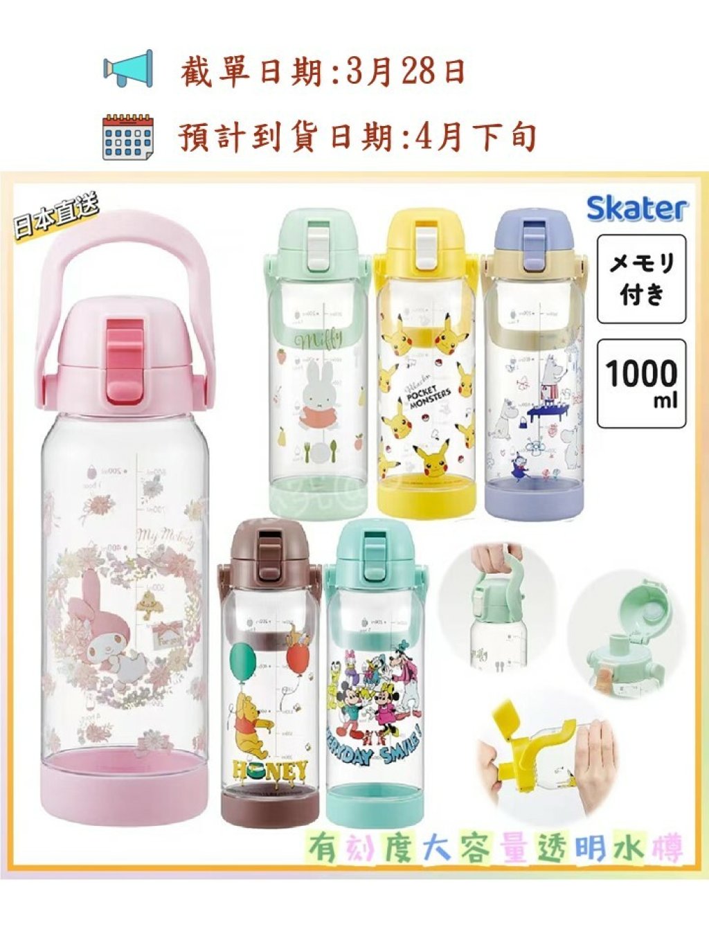 日本直送 Skater 有刻度大容量透明水樽1000ml