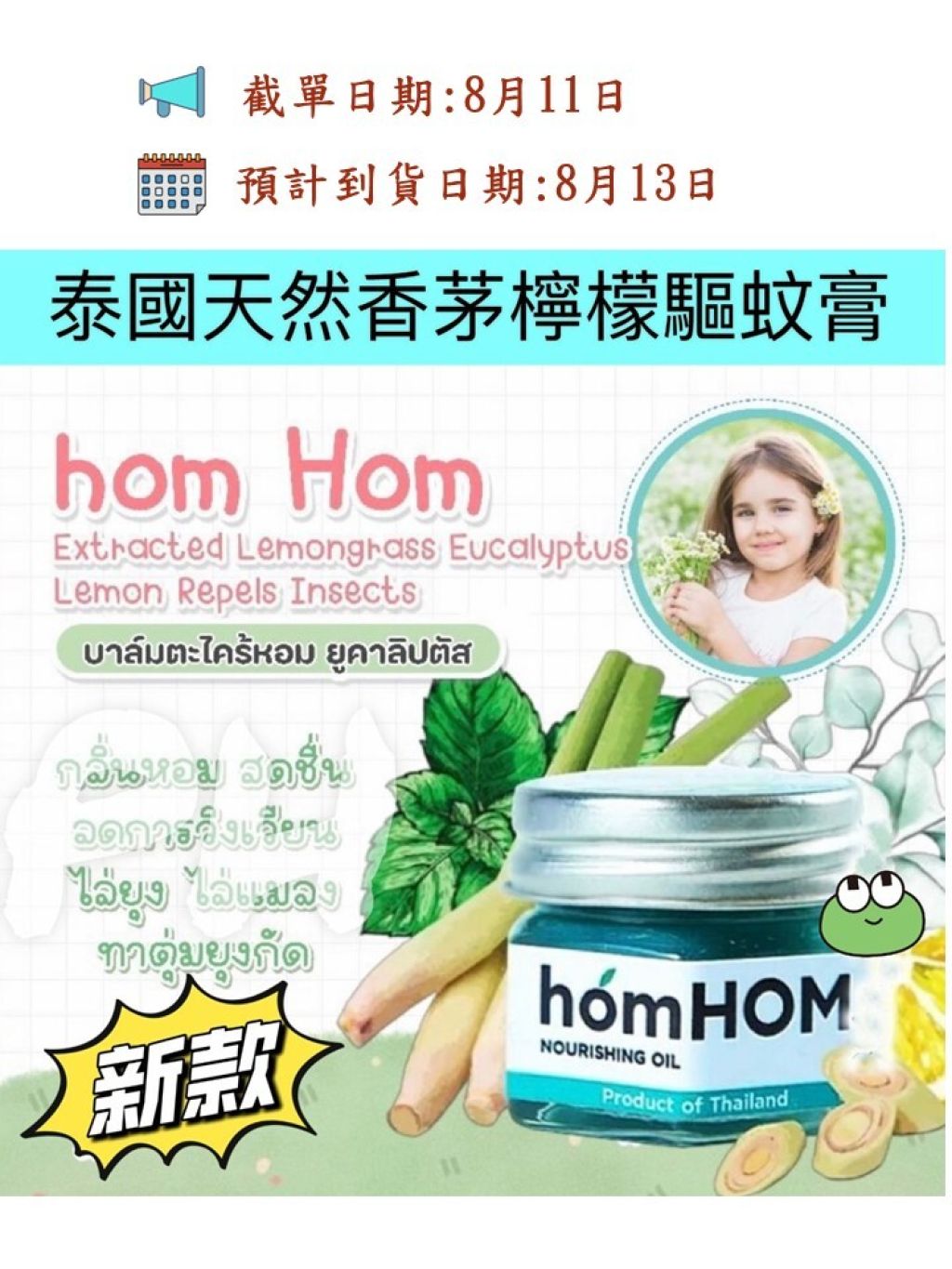 泰國🇹🇭homHOM 天然香茅檸檬草驅蚊膏25g