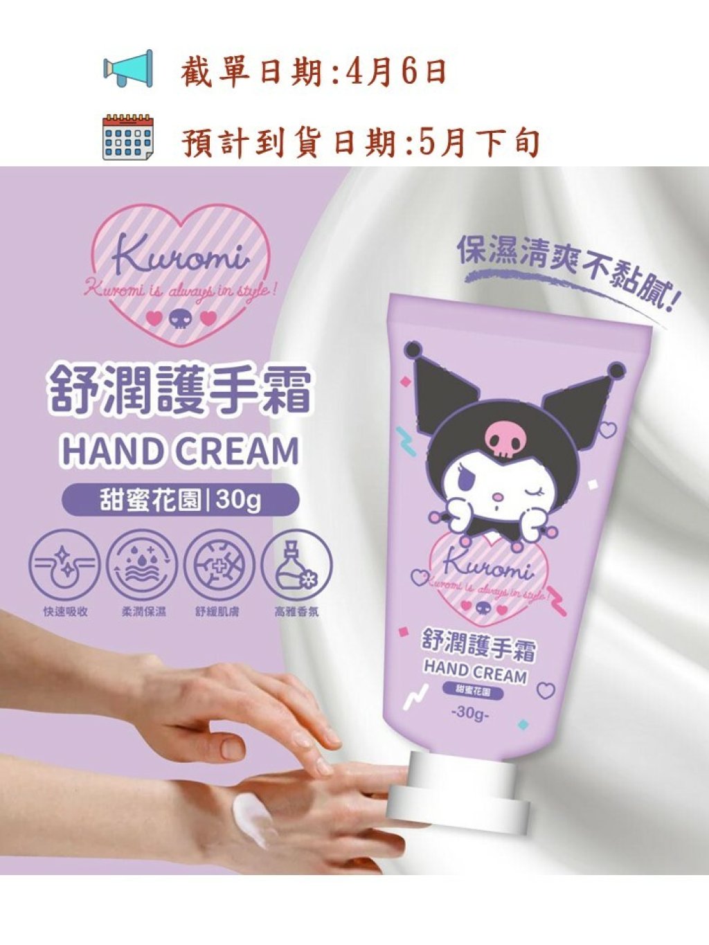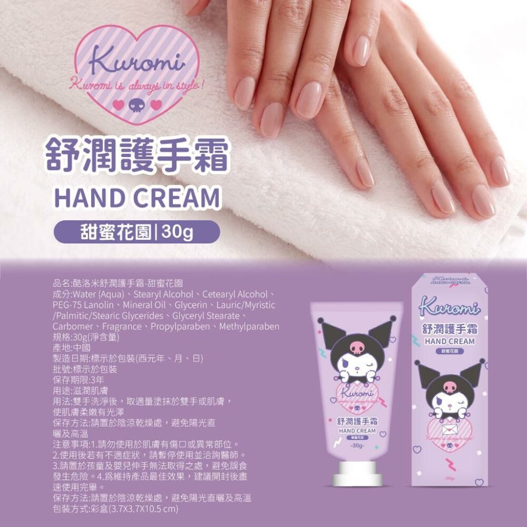 台灣 Kuromi 酷洛米 甜蜜花園 舒潤護手霜 【1組2支】