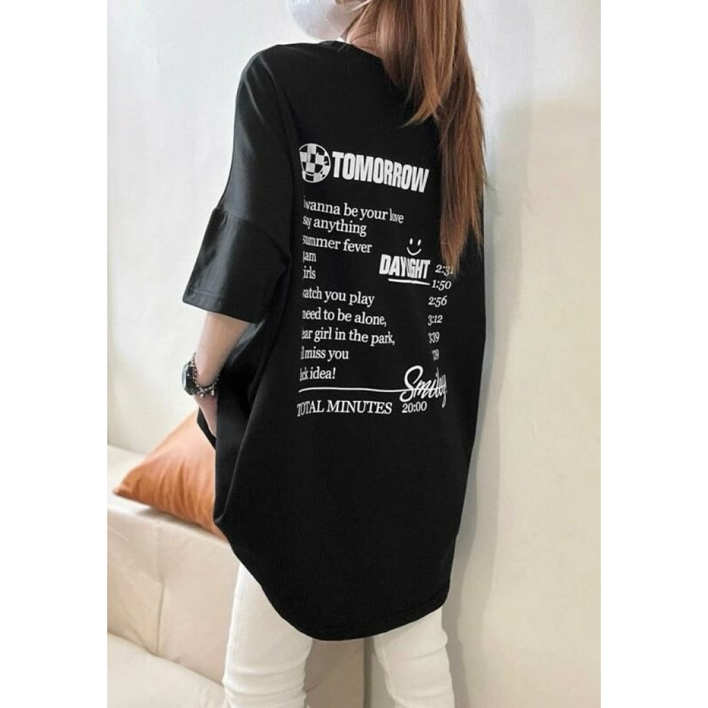 韓版英字母寬鬆大尺碼上衣五分袖