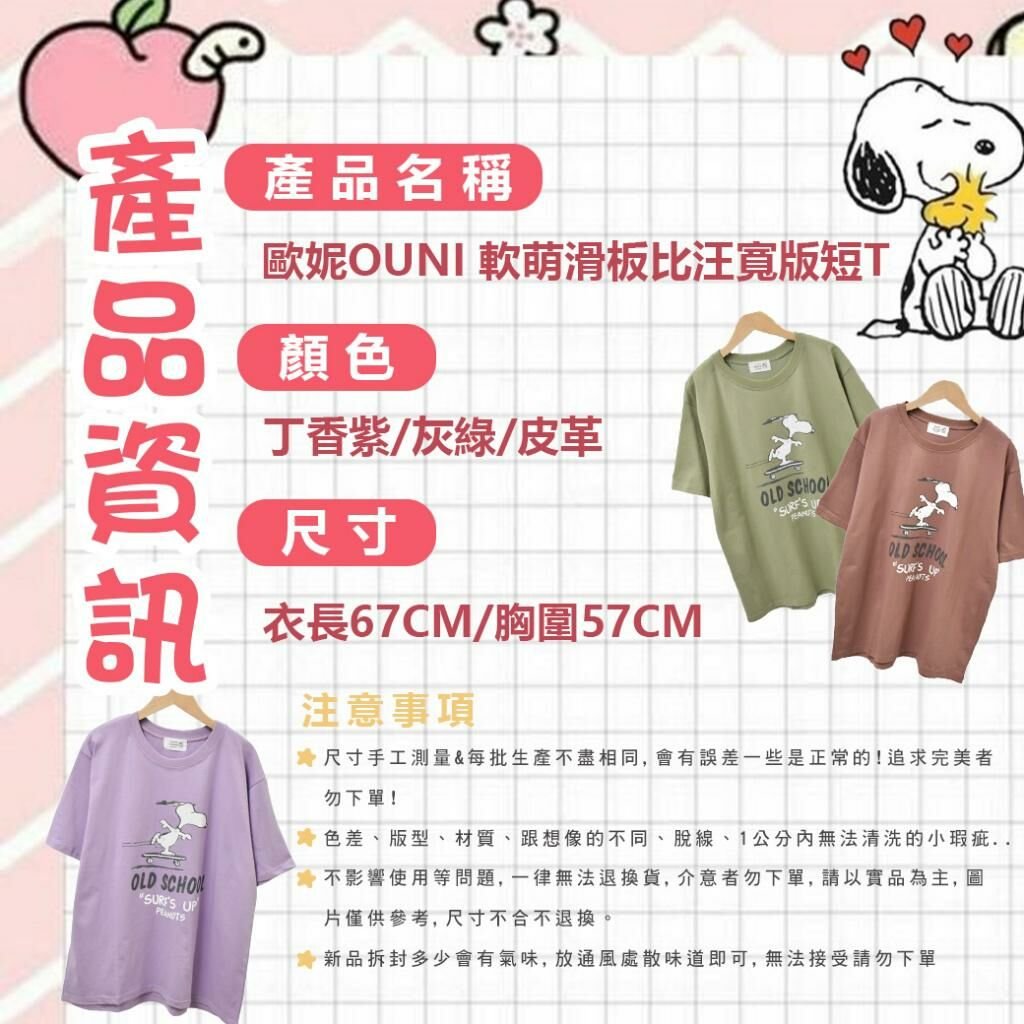 🟡MIT 歐妮Ouni 軟萌滑板比汪寬版短T🟡