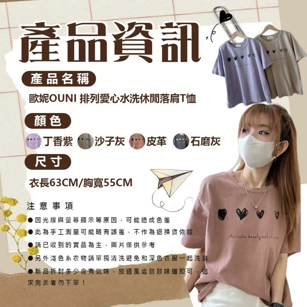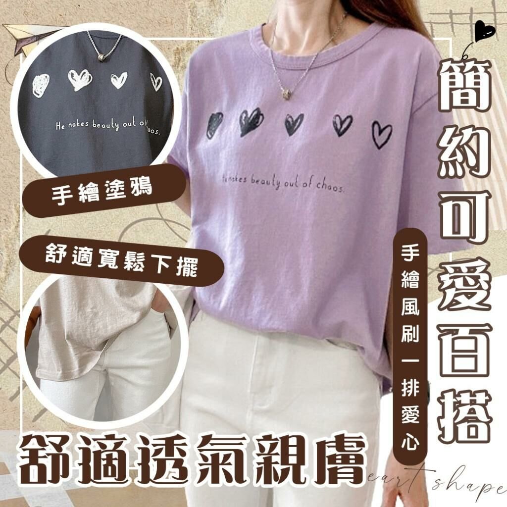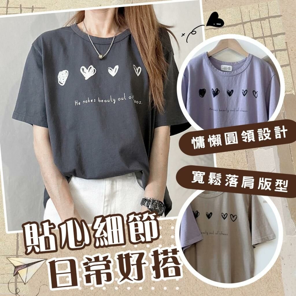 🟡MIT 歐妮Ouni 排列愛心水洗休閒落肩T恤🟡