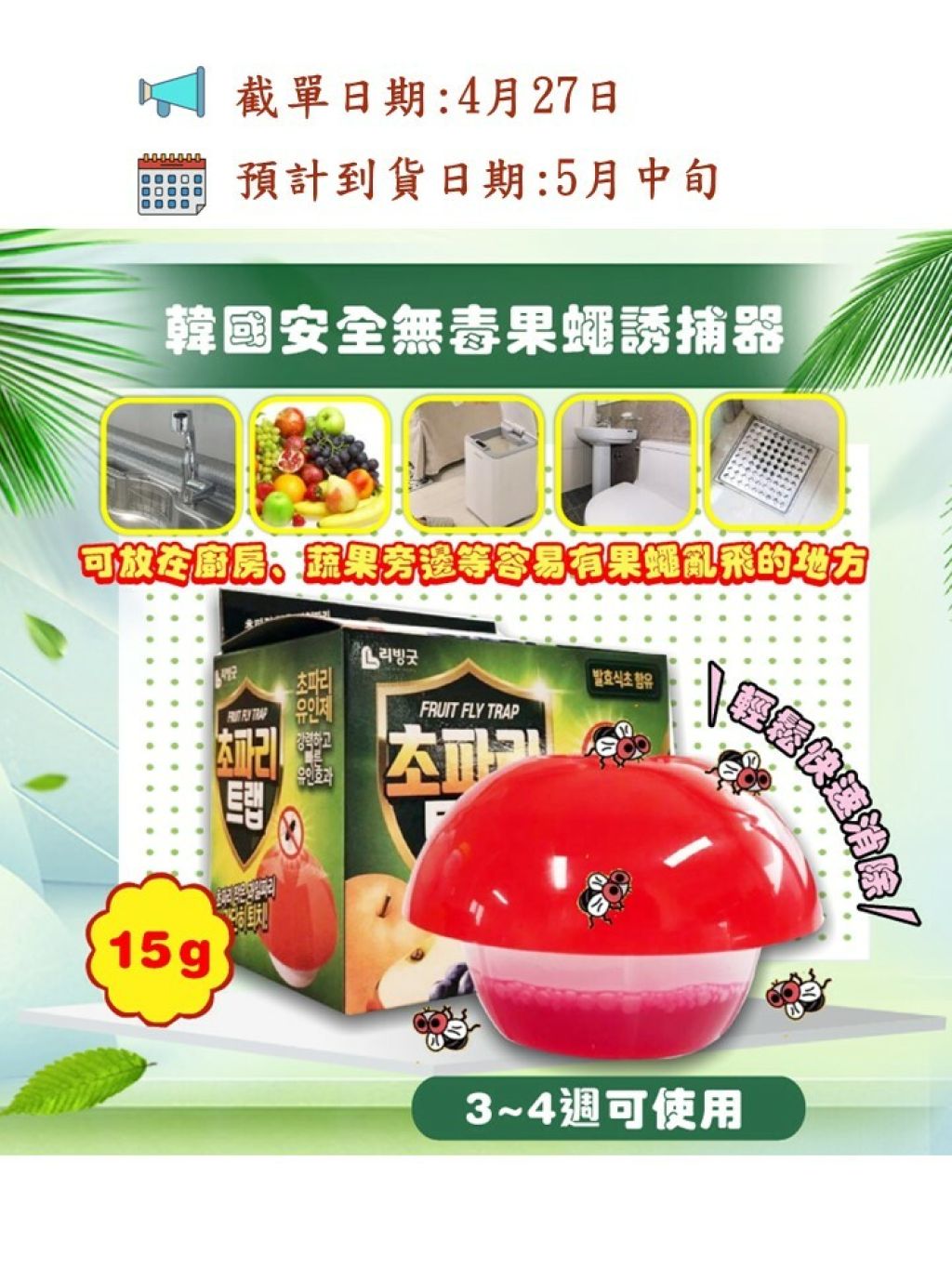 💕💕安全無毒果蠅誘捕器15g(3~4週可使用)