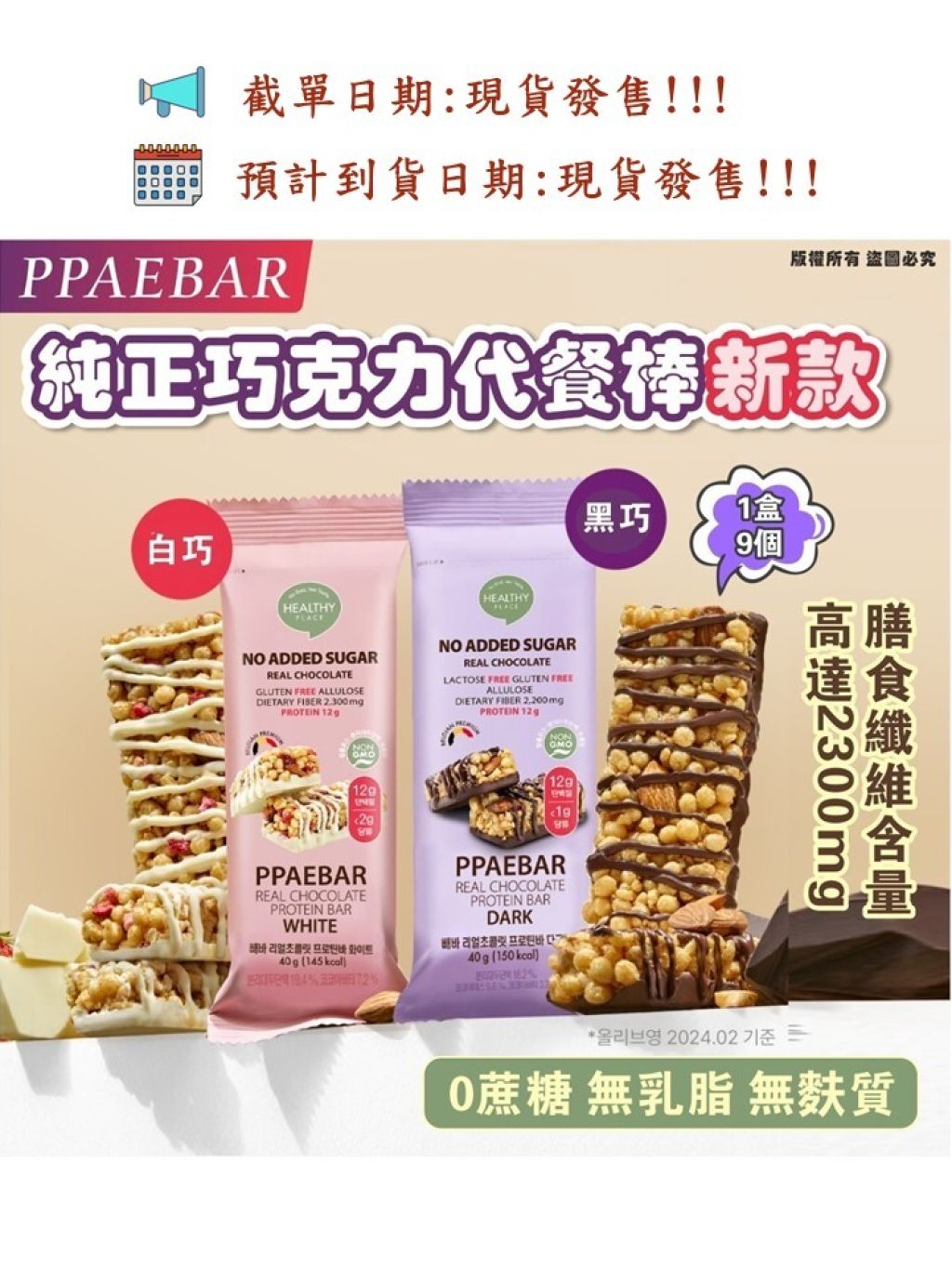 韓國新款PPAEBAR Real Chocolate Protein 能量棒 (1盒9條)