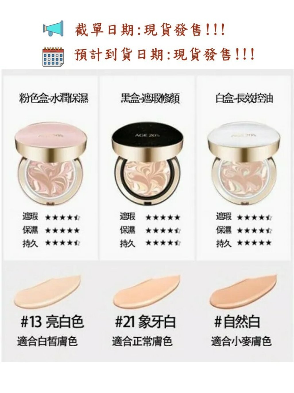 B.粉色盒(#13亮白色):滋潤保濕 👉適合中性偏乾和乾性肌膚(油性肌膚使用建議做好控油定妝)