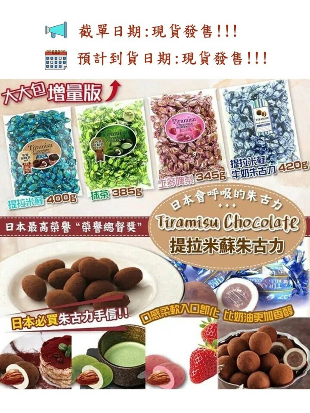 🏆連續兩屆榮獲日本🇯🇵全國糖果🍬博覽會之日本最高榮譽“榮譽總督獎”🏆🥇喺日本🇯🇵製嘅Tiramisu Chocolate 提拉米蘇☕️朱克力🍫⋯⋯被譽為會呼吸的朱古力🍫🤩🤩快將榮譽到港🥳🥳🥳