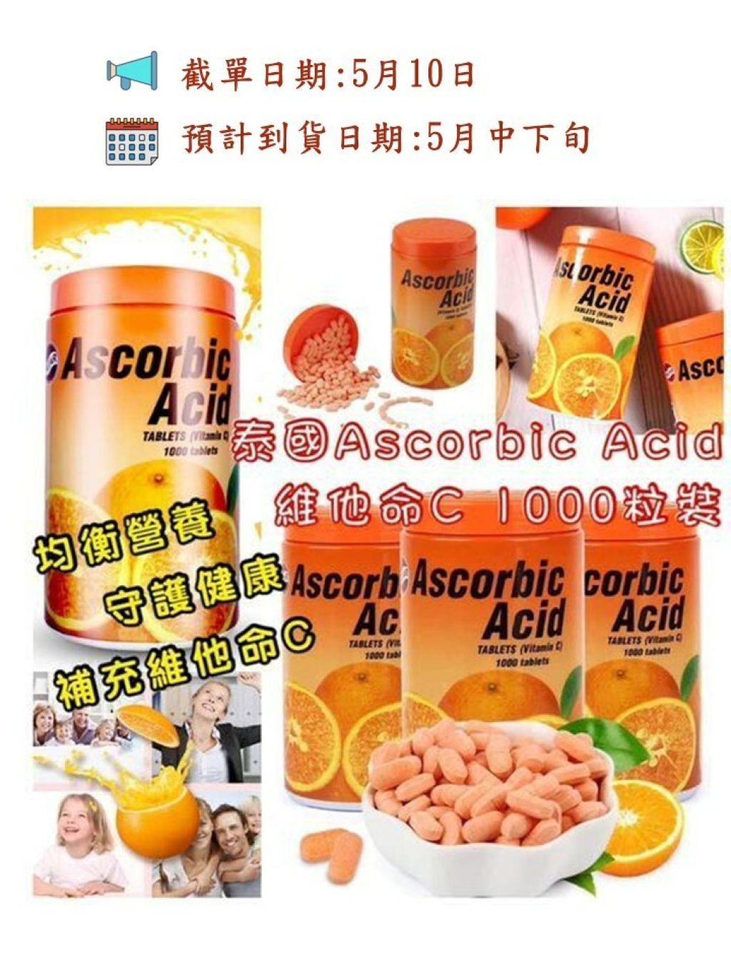 泰國🇹🇭 Ascorbic Acid 維他命C咀嚼片 (1000粒)