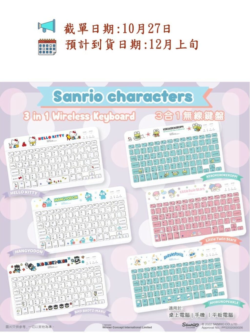【全新Sanrio 系列無線鍵盤】⭐️現正接受預購⭐️
