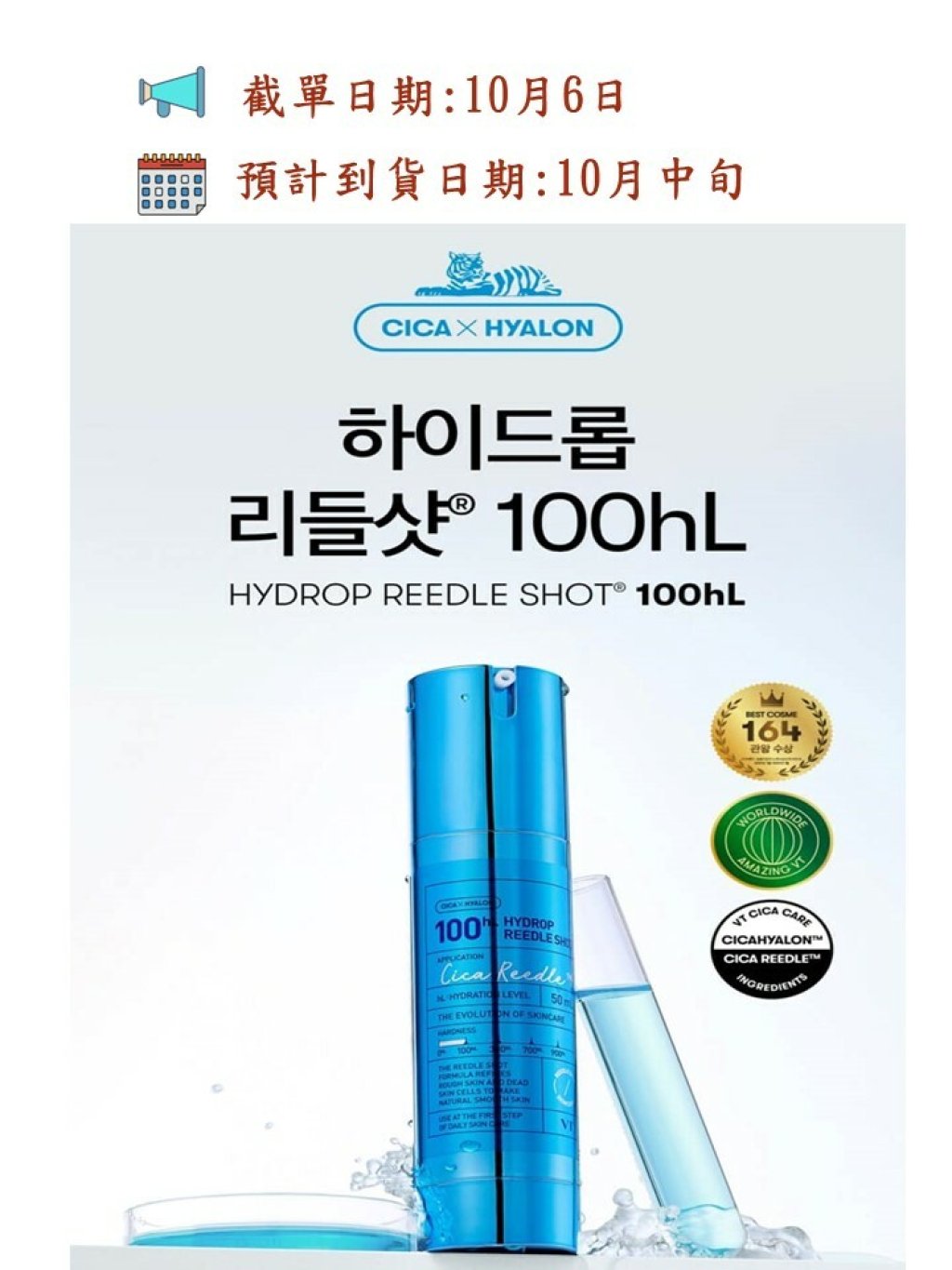 韓國 🇰🇷 VT Reedle Shot 爆水💦保濕修復再生100微針精華 50ml(藍色)