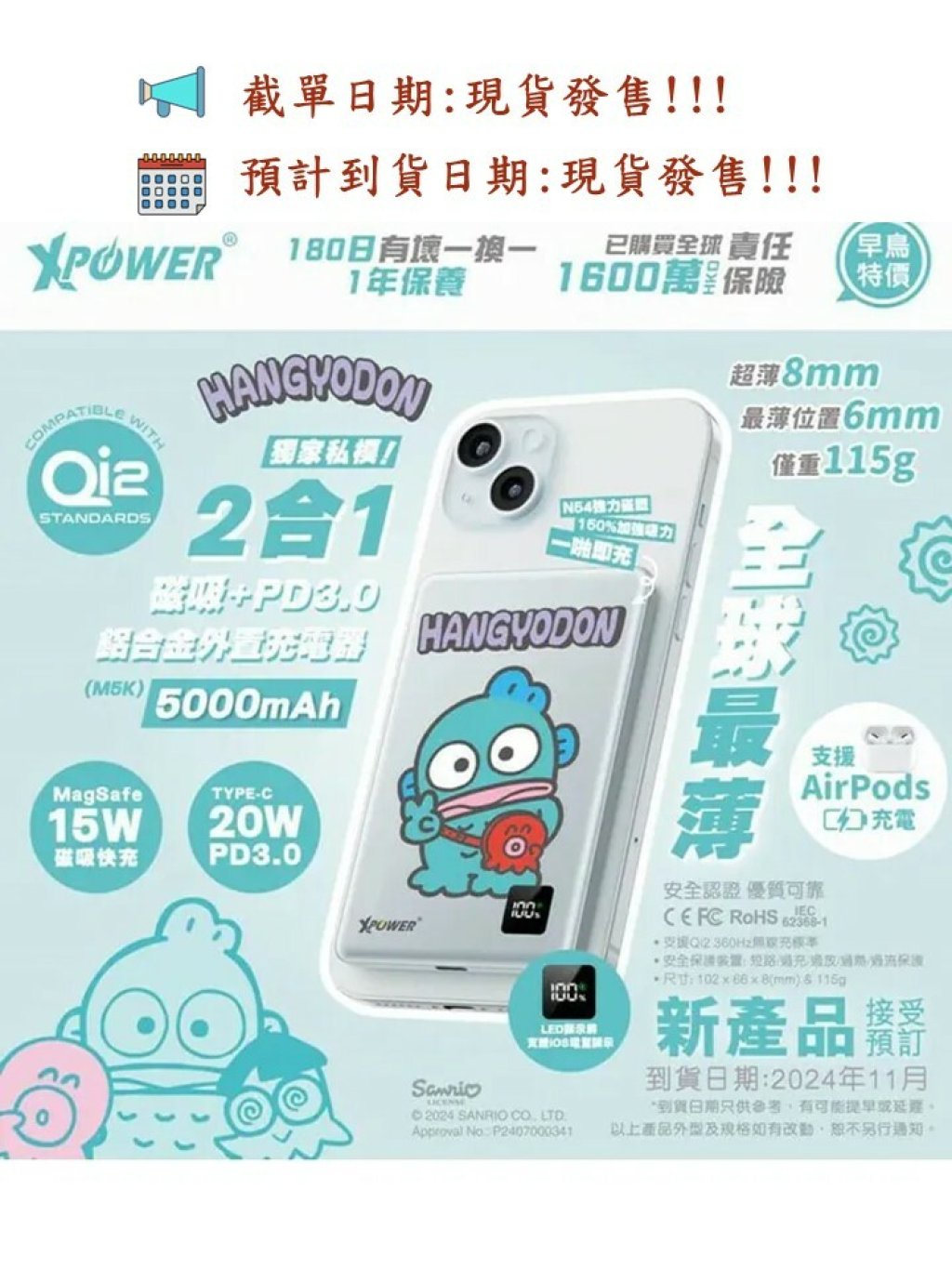 🟡XPower x Sanrio 3合1磁吸+PD3.0 5000mAh鋁合金移動電源 (M5K) 海怪🟡
