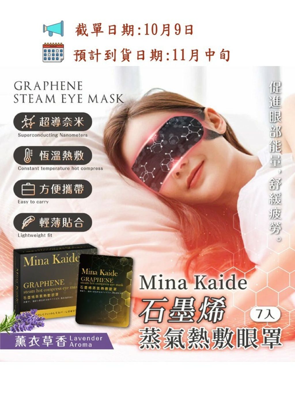 🟡Mina Kaide 石墨烯蒸氣熱敷眼罩ラベンダーの香り (1盒7入)🟡