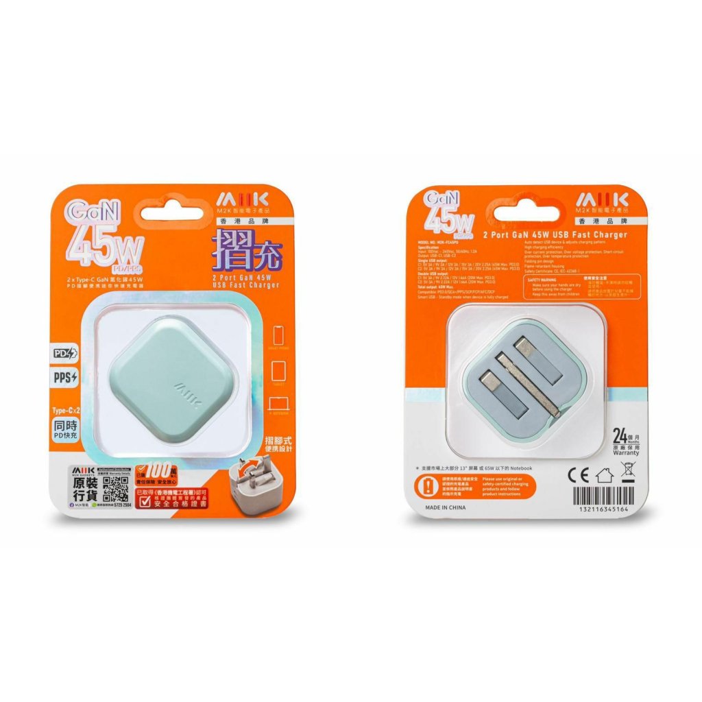 M2K『摺充』 摺腳雙TYPE-C GaN45W迷你快速充電器
