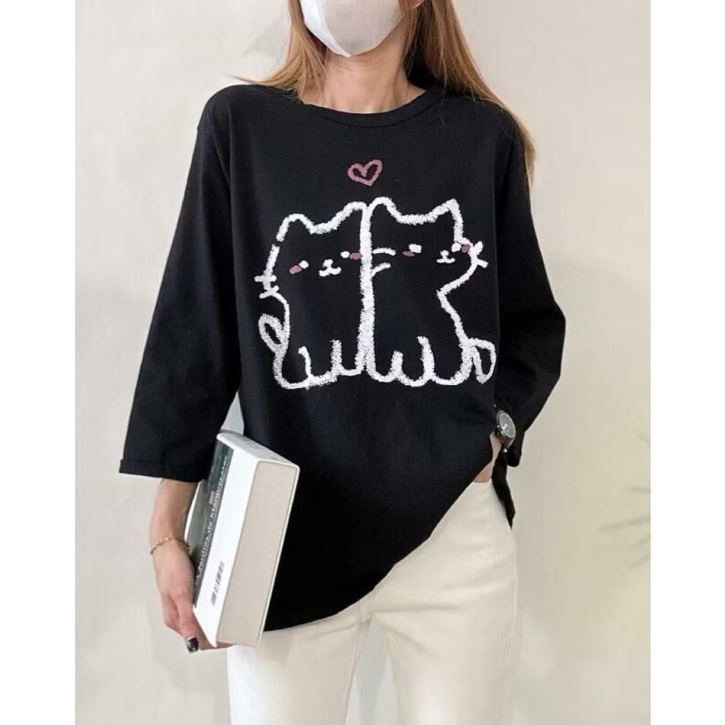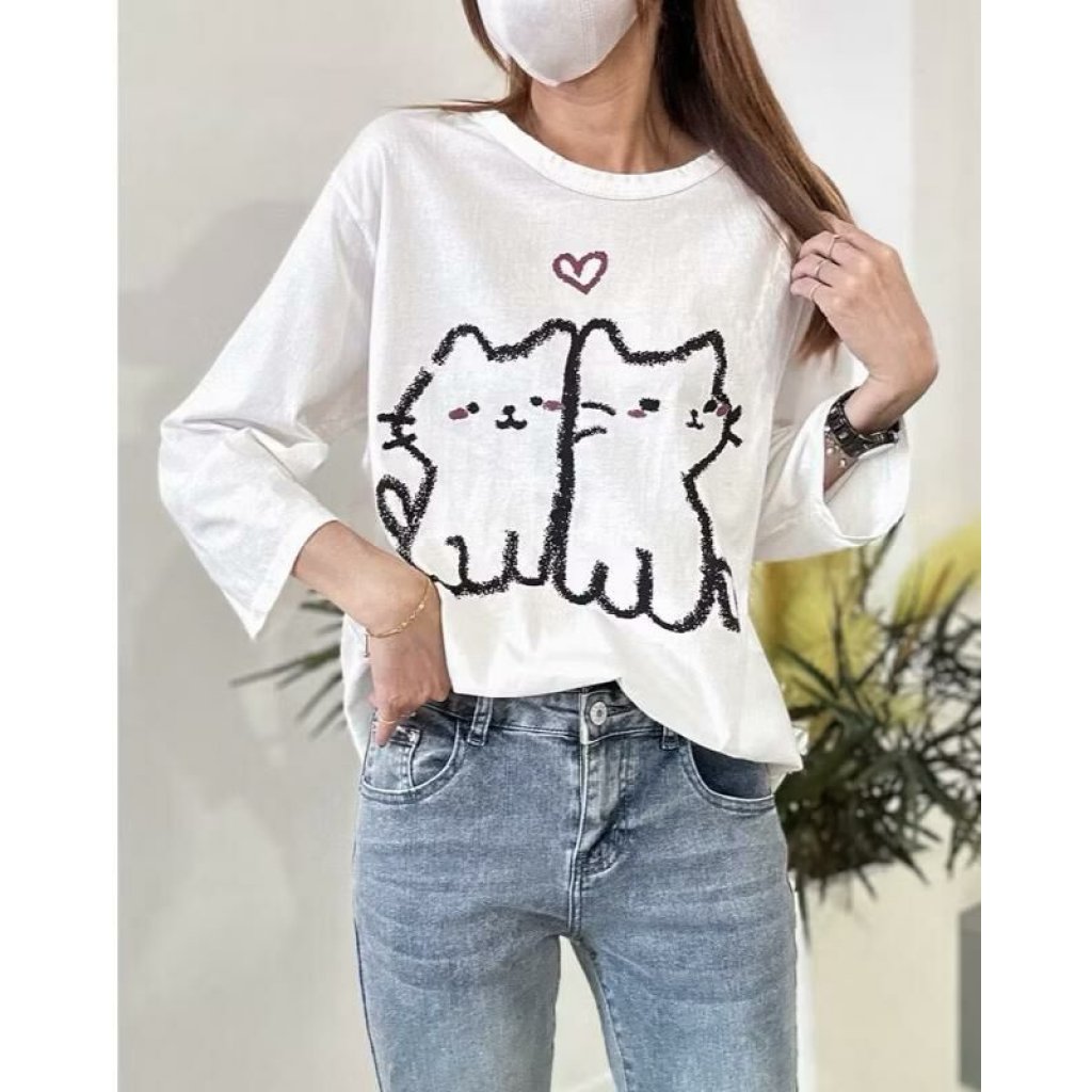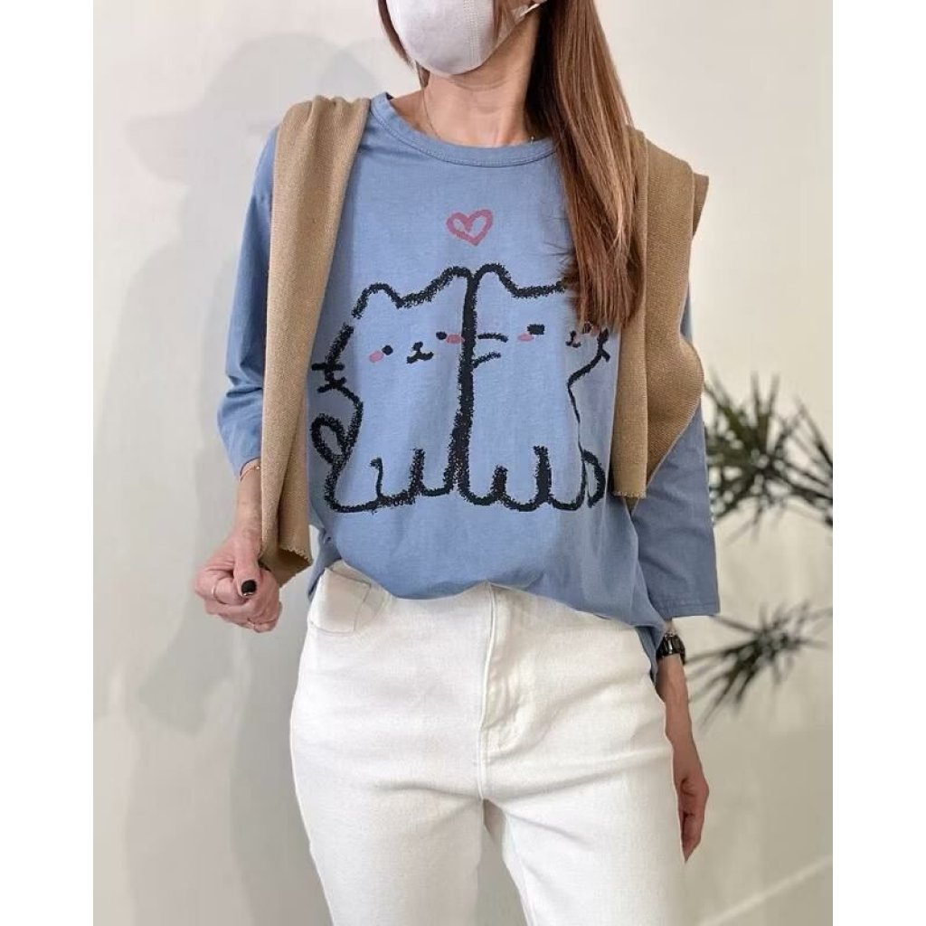 🟡水洗愛心雙貓T上衣🟡
