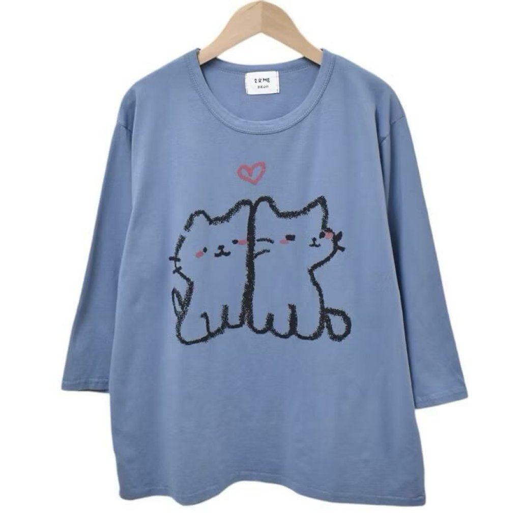 水洗愛心雙貓T上衣