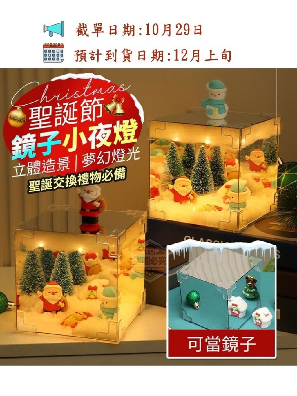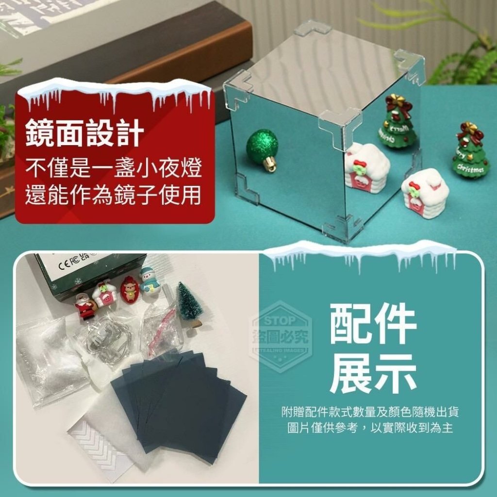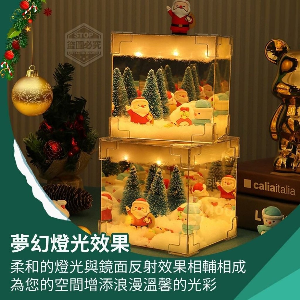 「立體造景夢幻燈光聖誕節鏡子小夜燈」