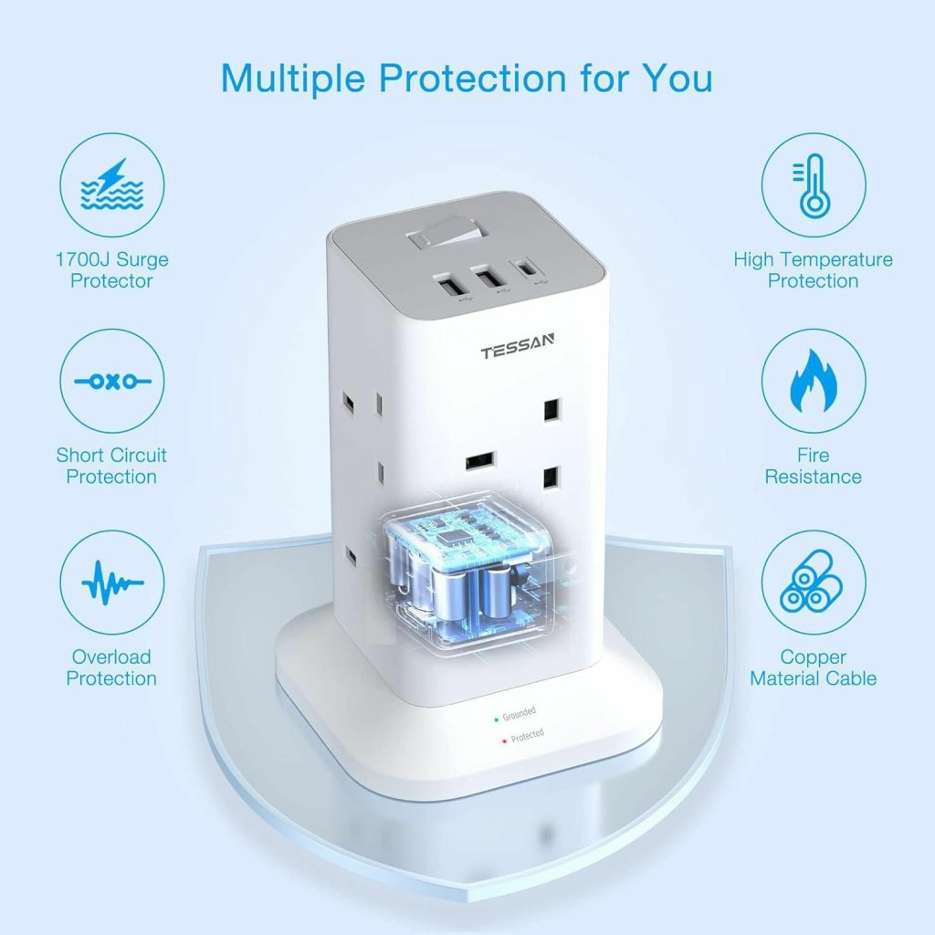 TESSAN塔式拖板適用於家用、學校、辦公室環境使用
