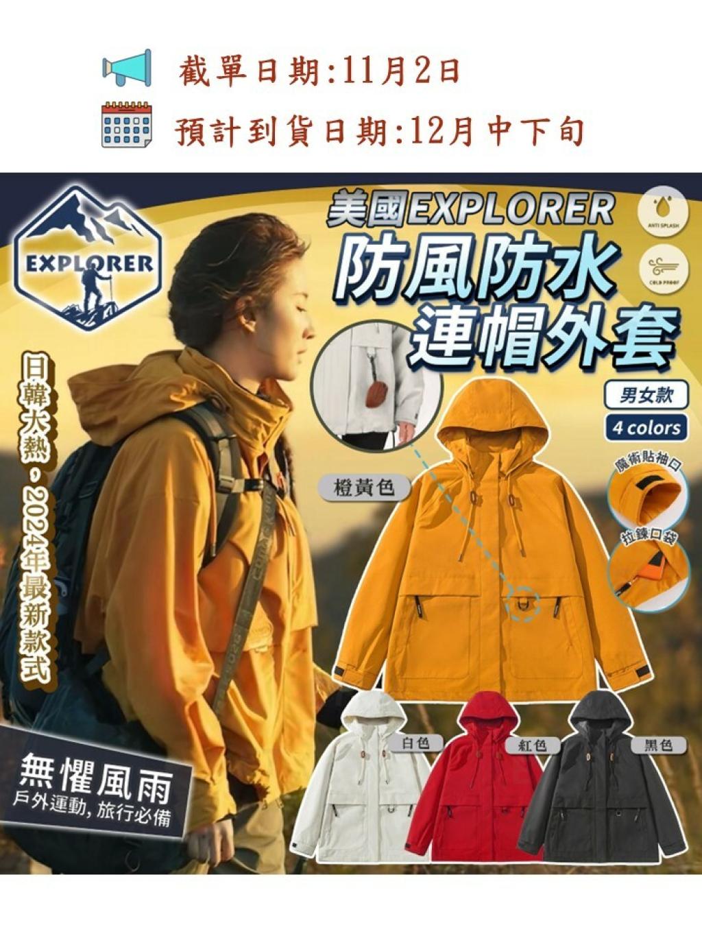 美國 EXPLORER 連帽防風防水外套💦, 🈹🈹原價$499, 限時勁減最平$115/件🙀🙀