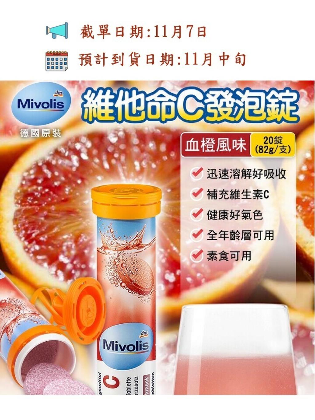 德國製Mivolis維他命C泡騰片 -血橙味 (20片) (2件/套) (只限批發會員下單)