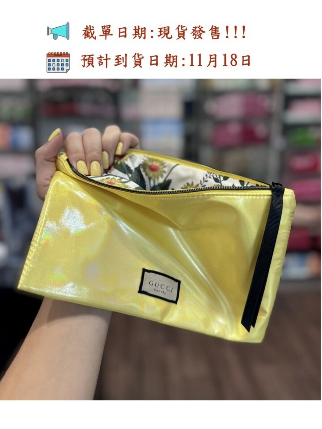 🌸GUCCI 閃亮花卉內拉鍊化妝袋