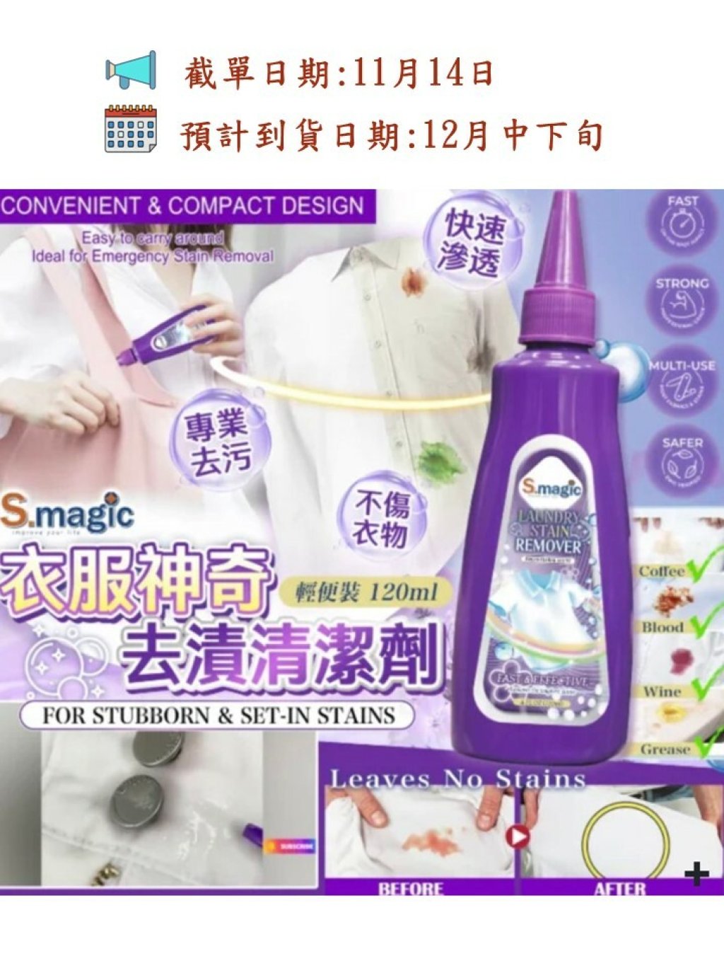 美國熱賣🇺🇸S.magic 衣服神奇去漬清潔劑-(1套3支), 原價HK$4x/支, 限時勁減低至$12/支🤣🤣