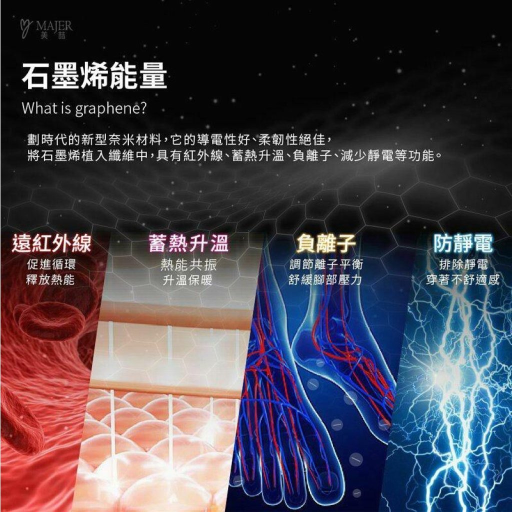 ✔️石墨烯獨特纖維,可釋放遠紅外線及負離子能,對人體健康有相當大的幫助