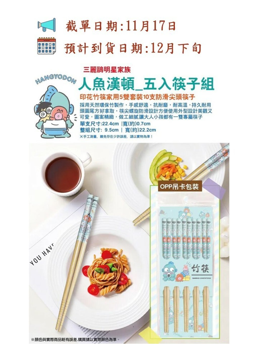 台灣Sanrio 人魚漢頓 5入竹筷組(1組2包共10入)