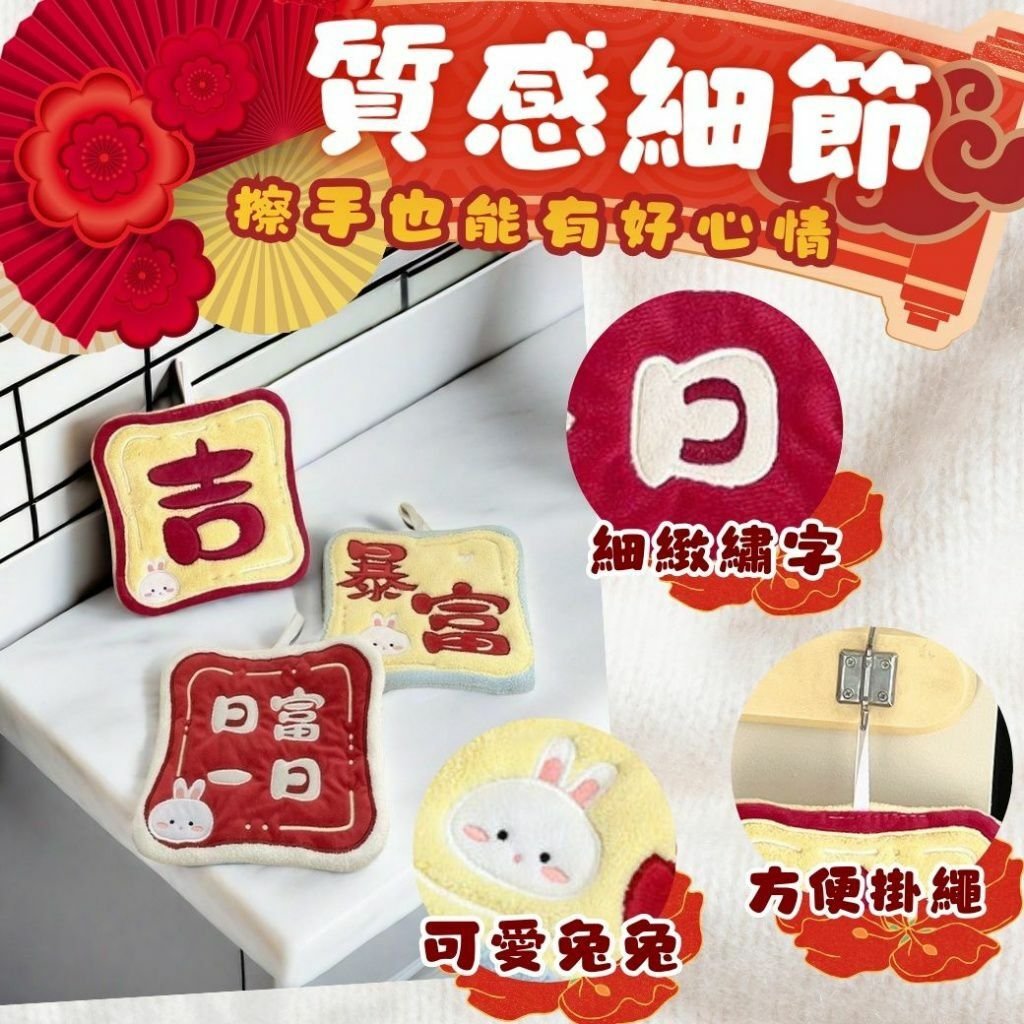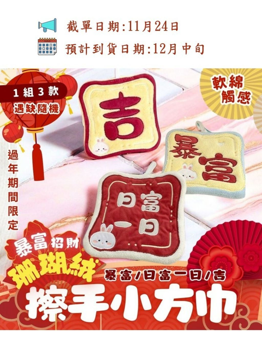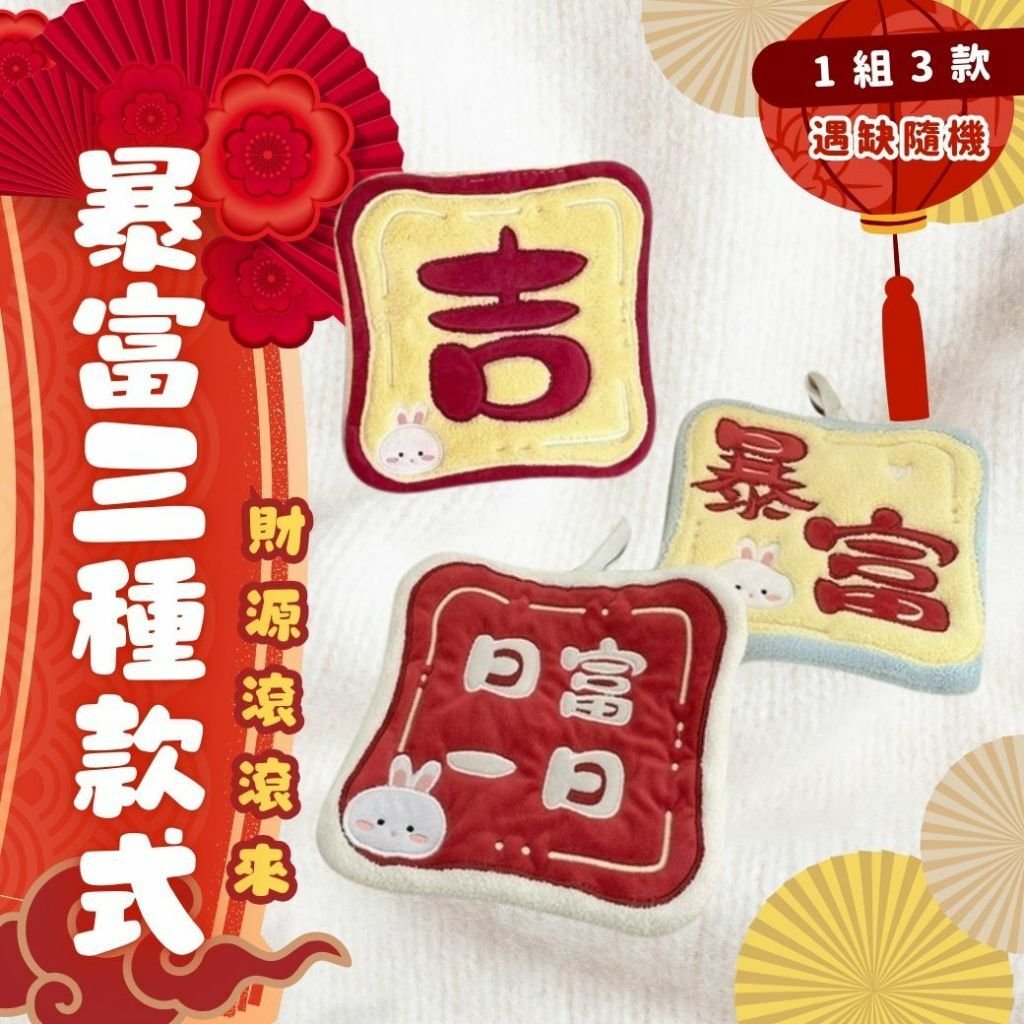 過年期間限定🧧暴富招財珊瑚絨擦手小方巾(1組3款 )