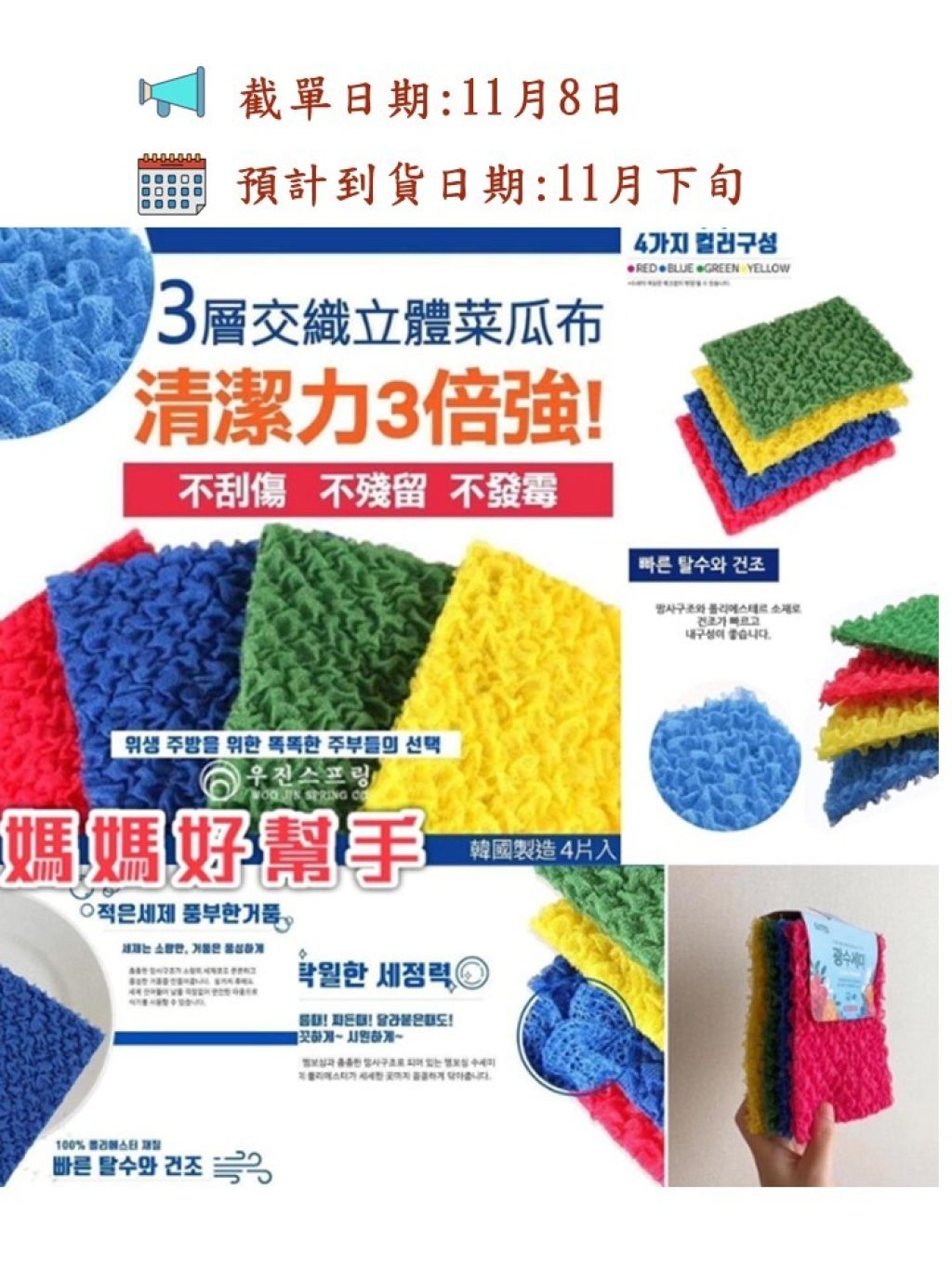 菜瓜布材質係韓國都有分等級架~而呢款就係最高等級💯耐用度是其他菜瓜布3倍‼‼‼