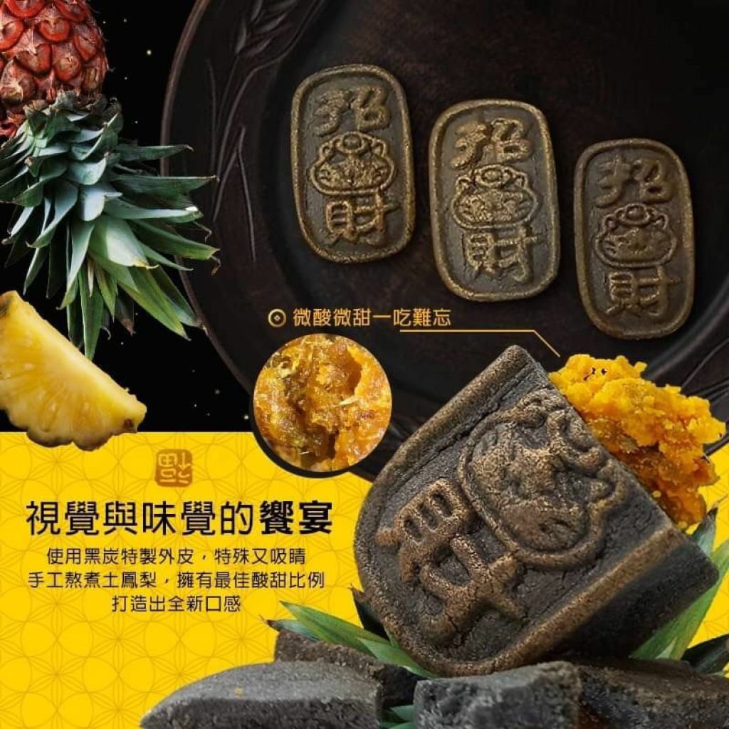 成分:麵粉.糖.奶油.鳳梨.鹹蛋黃.竹碳粉
