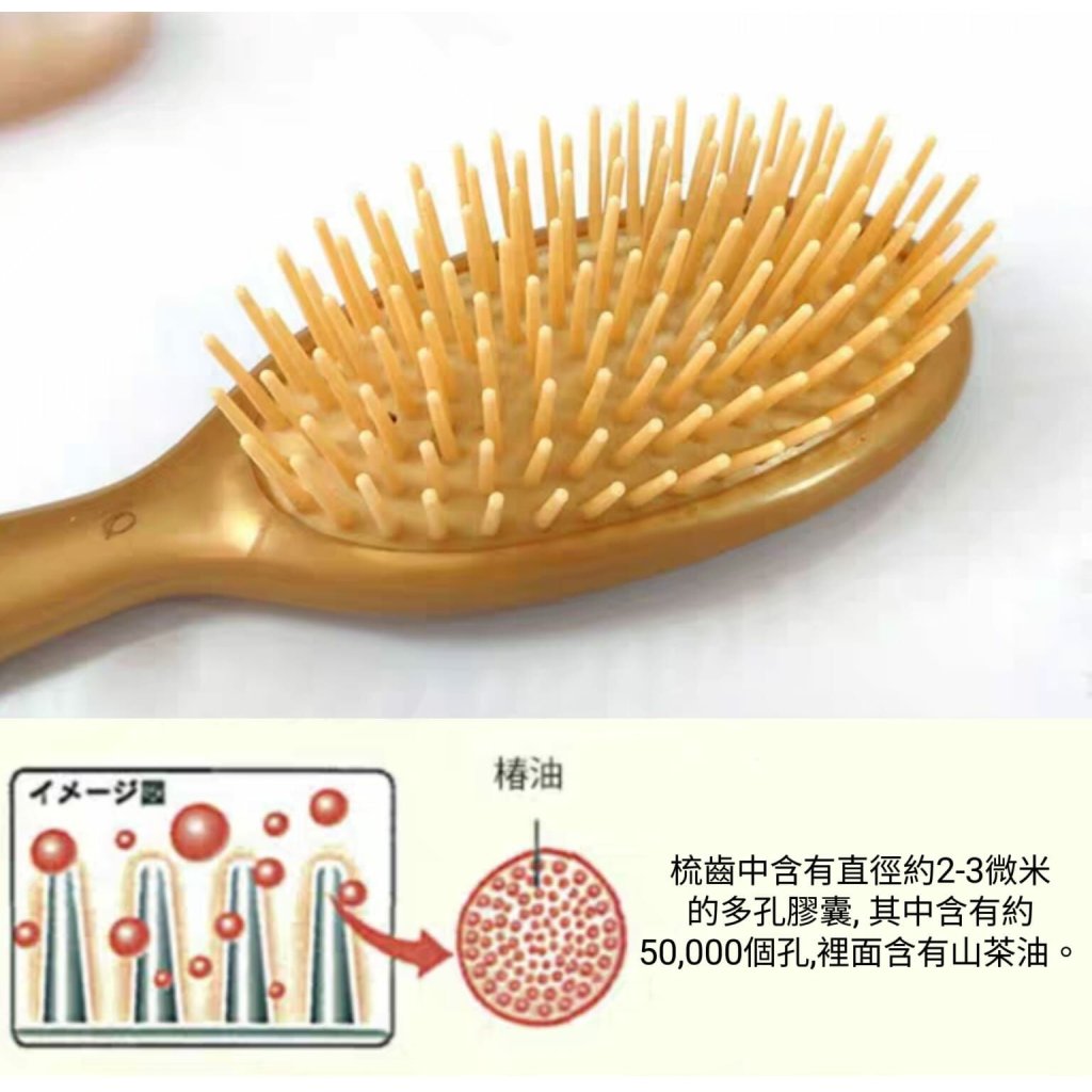 ☑️梳齒及底座部分含有山茶花油成分,精油可均勻遍布滋潤頭髮
