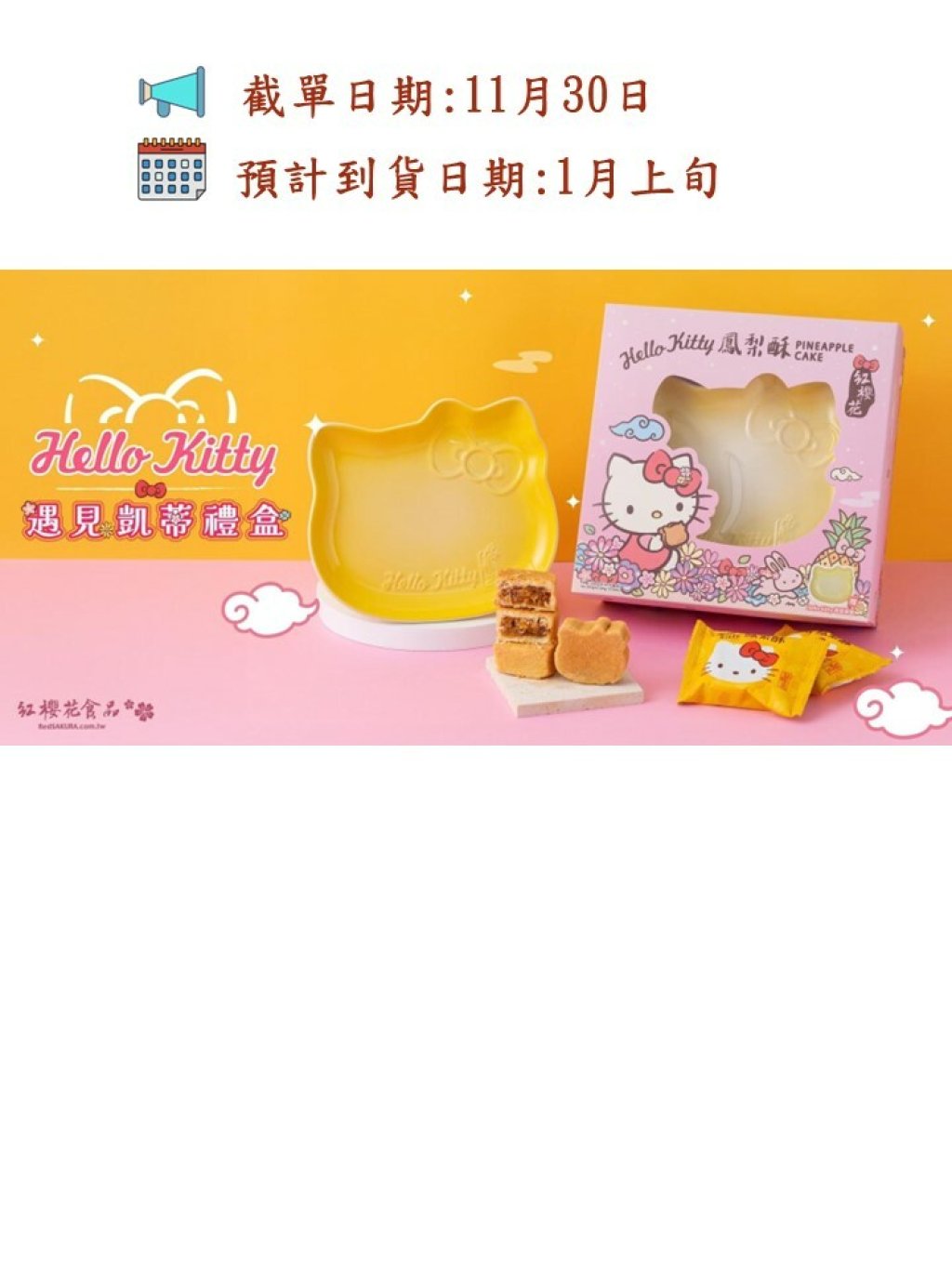 內容物:Hello Kitty 造型鳳梨酥6入、Hello Kitty 造型限定瓷盤