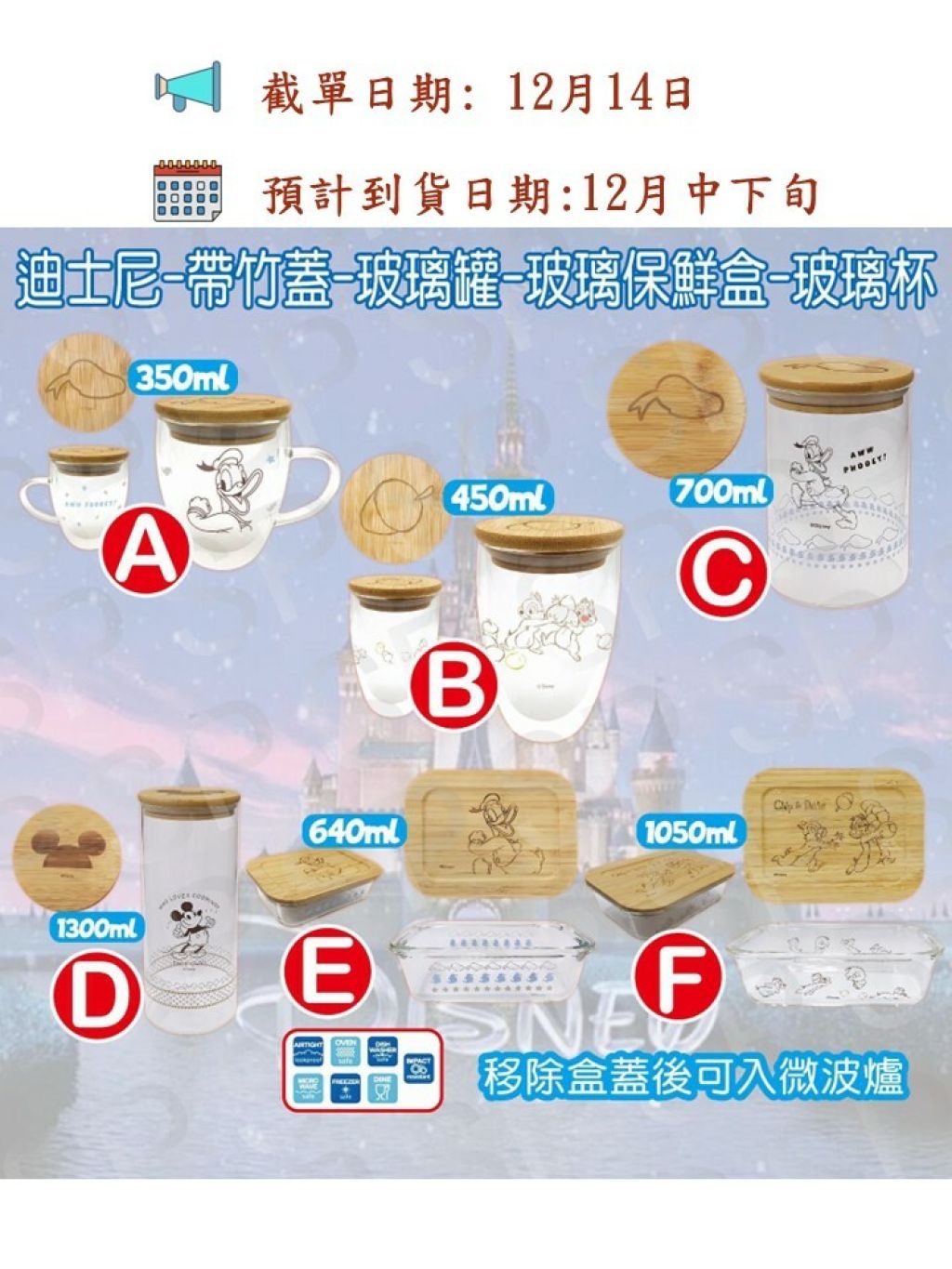 呢套迪士尼玻璃🎀餐具,連蓋抗熱不燙手🔥,不同款式,不同用途。🎉一定有款啱你用