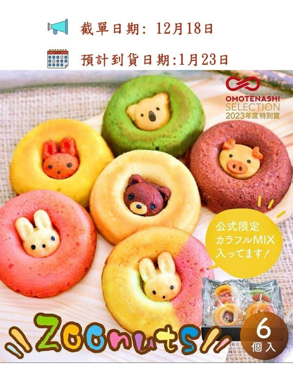 🟡日本 純手工ZOONUTS動物甜甜圈🍩(6入)禮盒🟡