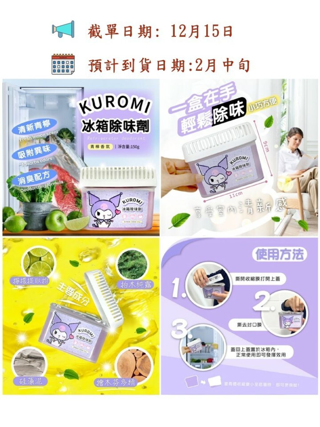 🟡台灣 KUROMI 冰箱除味劑 (青檸香氛) 1組3盒🟡