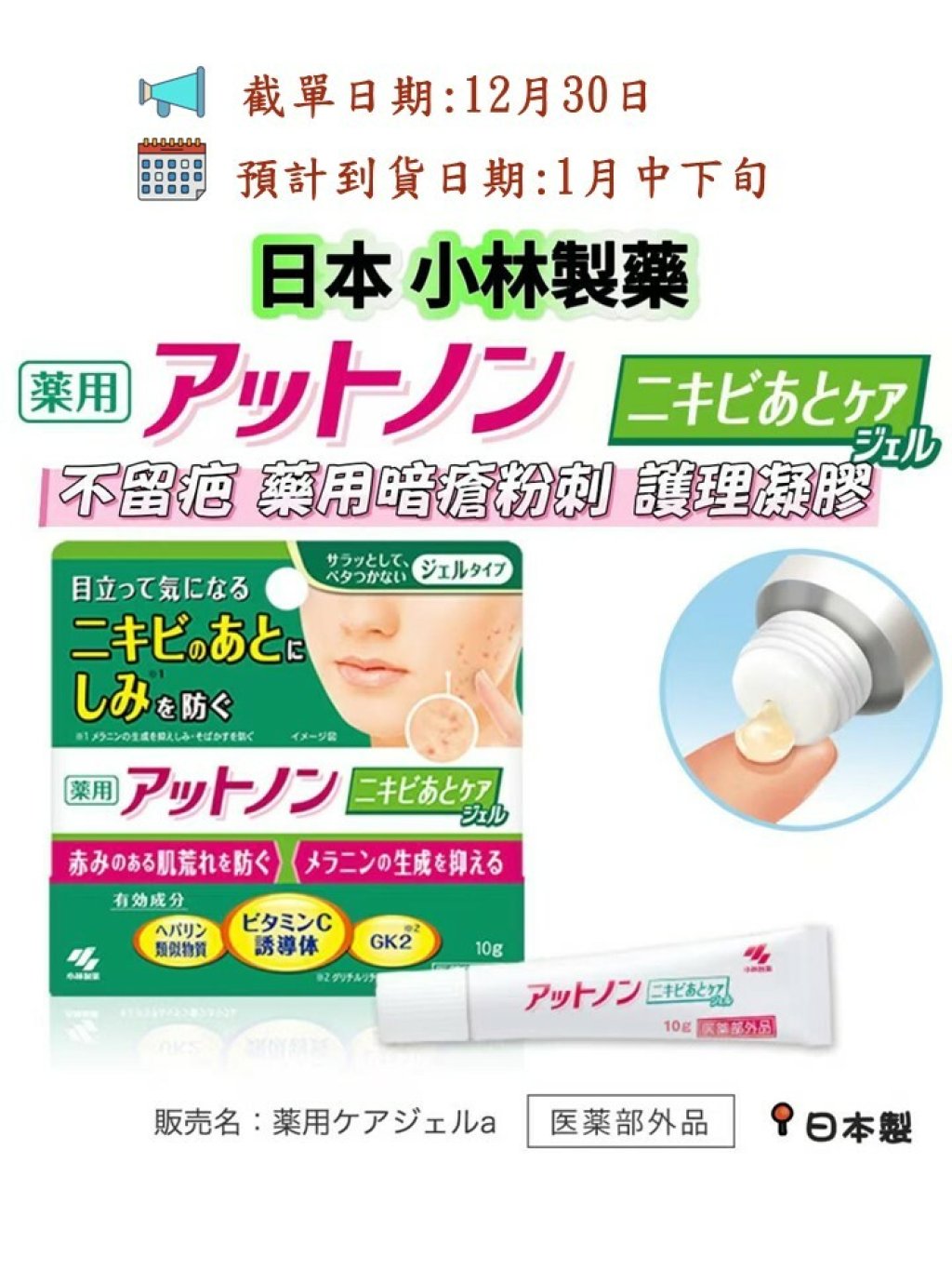 日本 小林製藥 不留疤 藥用暗瘡粉刺護理凝膠 10g