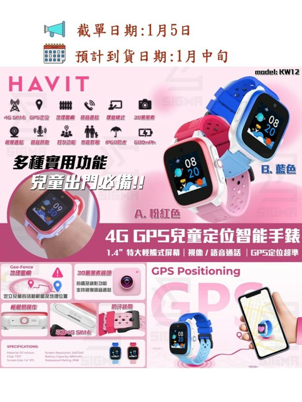 🟡HAVIT KW12 4G GPS兒童定位智能手錶🟡