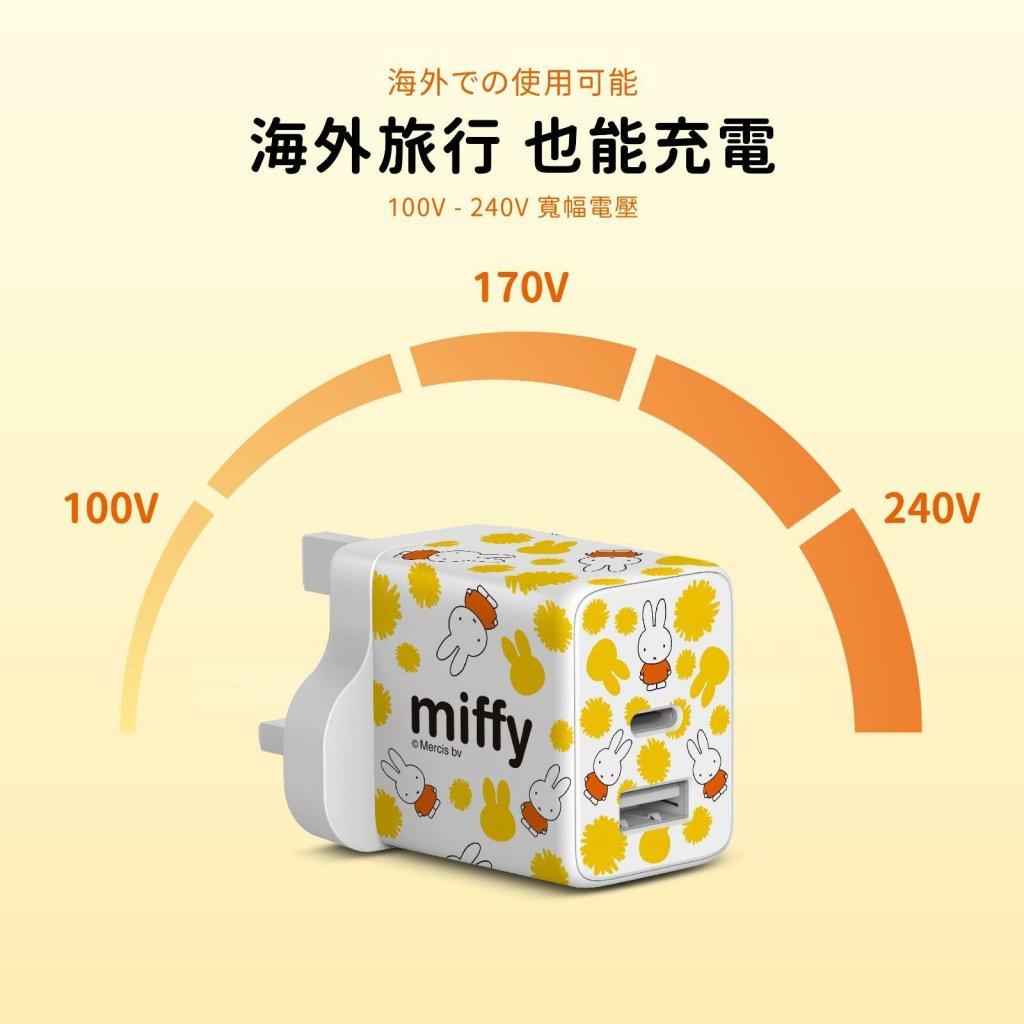 使用GaN技術,這款充電器在體積更小的情況下,提供強大的輸出功率,讓您能快速為各類電子設備充電。無論是手機、平板還是其他設備,miffy 充電器都能為您提供穩定的電源支持。