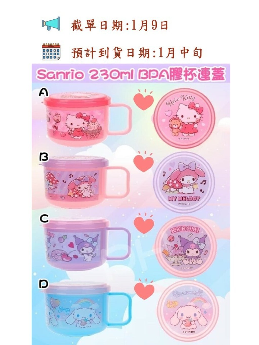 🟡Sanrio 230ml BPA 膠杯連蓋🟡