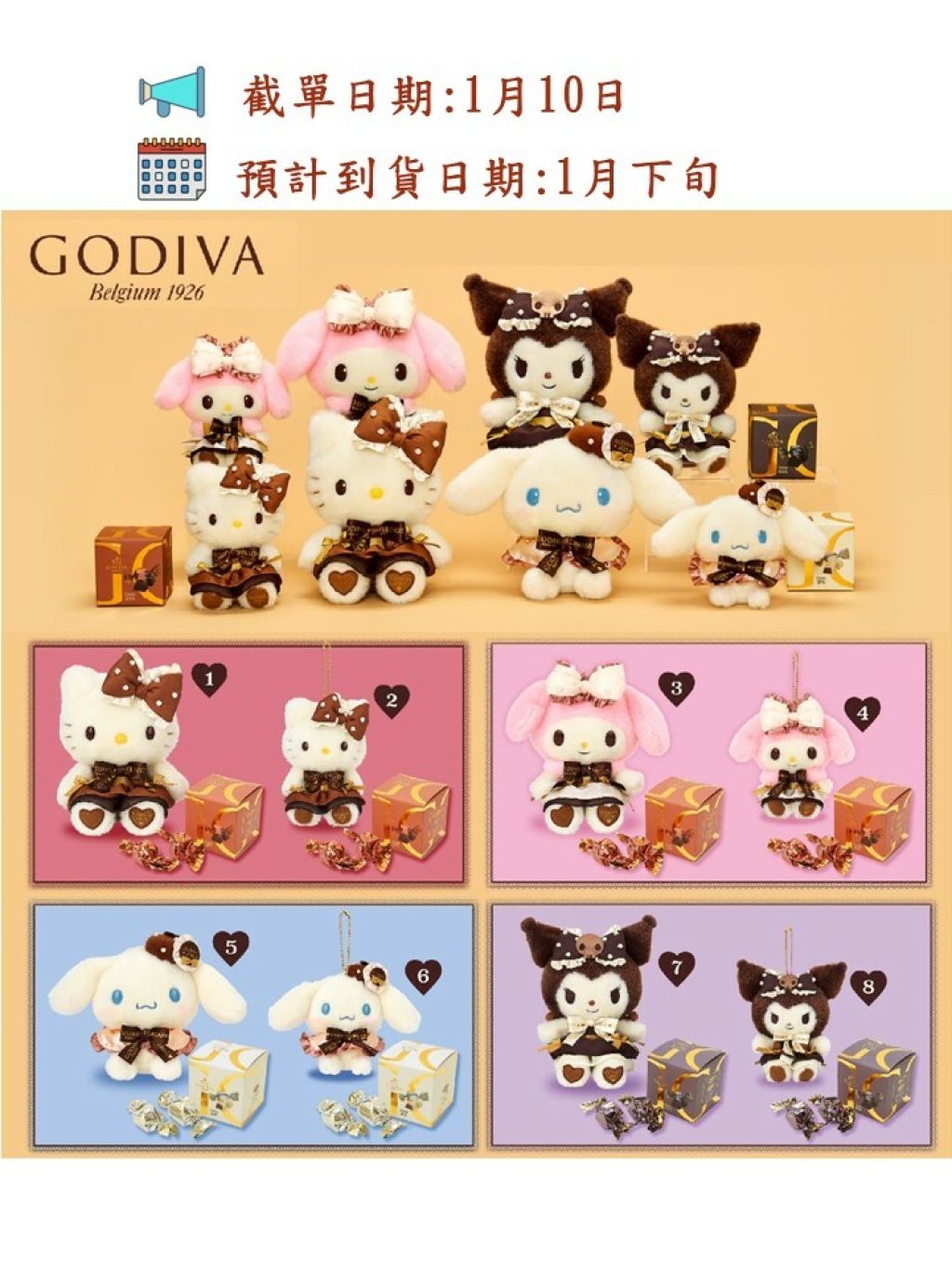 無論公仔或吊飾都會根據角色佩戴不同色調的 GODIVA 緞帶🎀,每隻角色都有2025的刻印,好高紀念價值呀🥇!