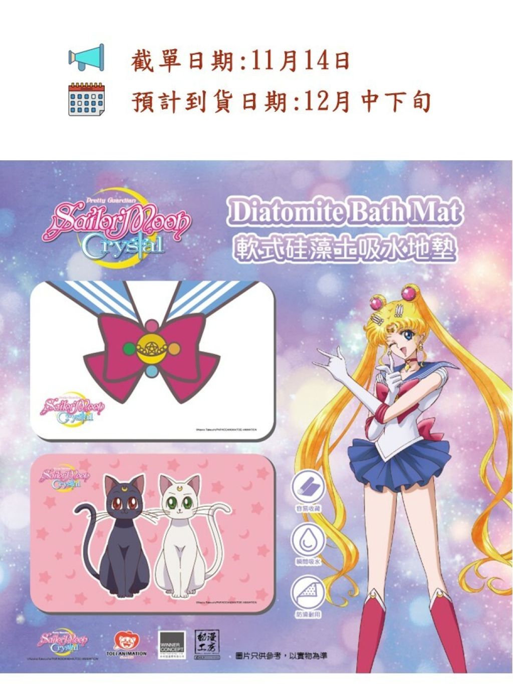 【美少女戰士 Crystal 軟式硅藻土吸水地氈】接受預購❗