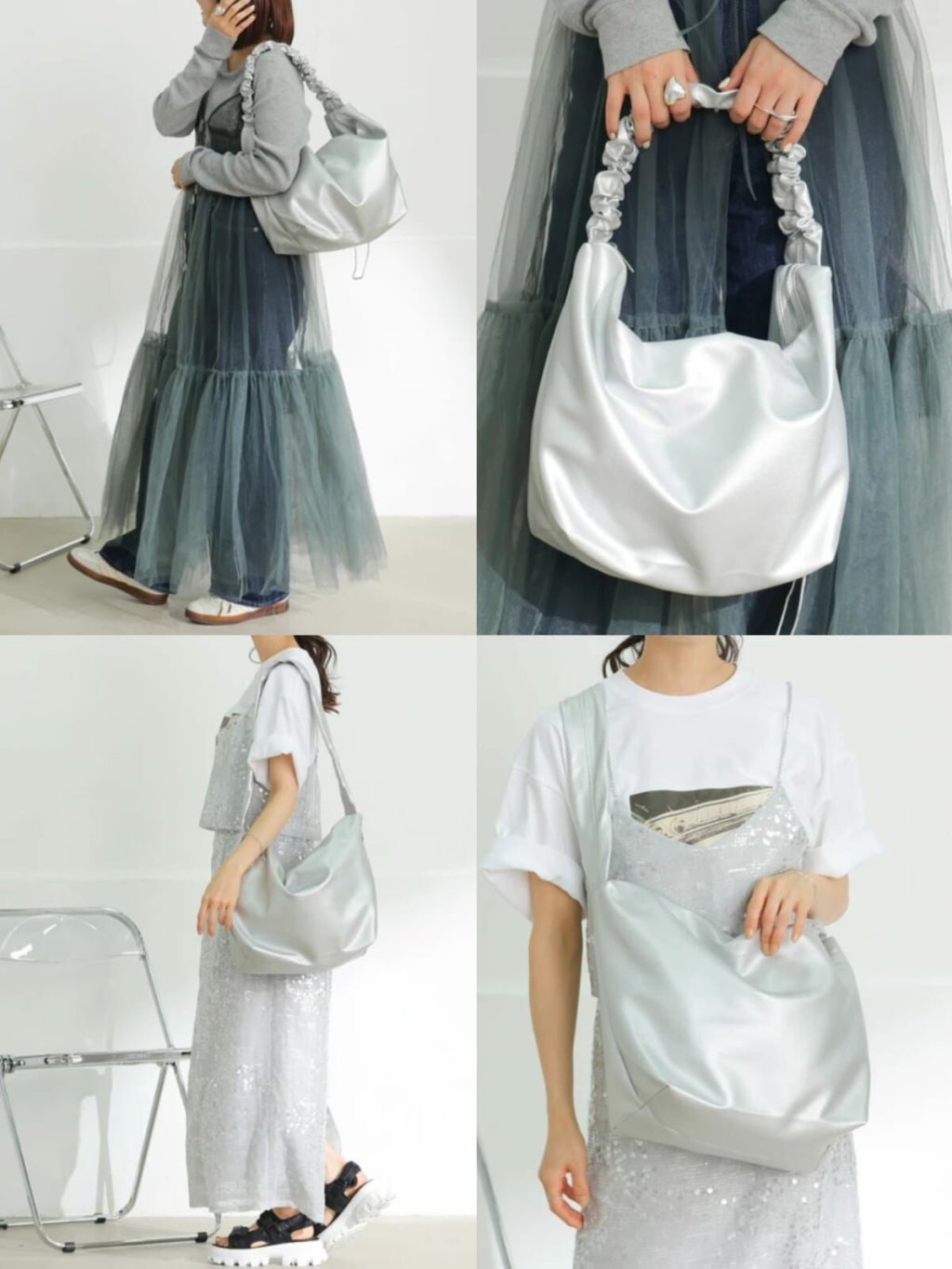 褶皺抽帶拉伸時尚設計👜可作單肩包或手提包的2種風格,可裝很多小物品,適合日常配搭👍