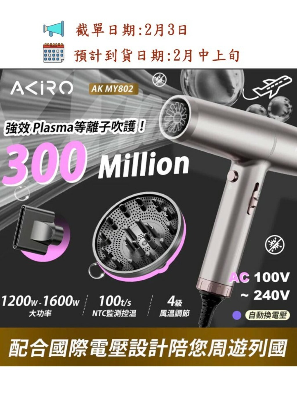 🟡Akiro WorldStyler 全球電壓高速護髮風筒🟡