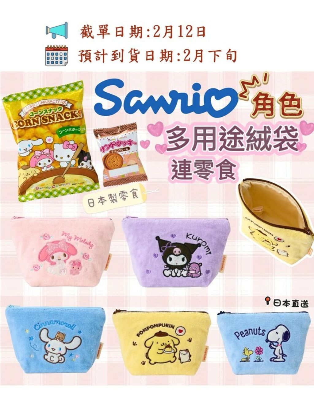 日本 Sanrio 角色 多用途絨袋 連零食 (只限批發會員下單)