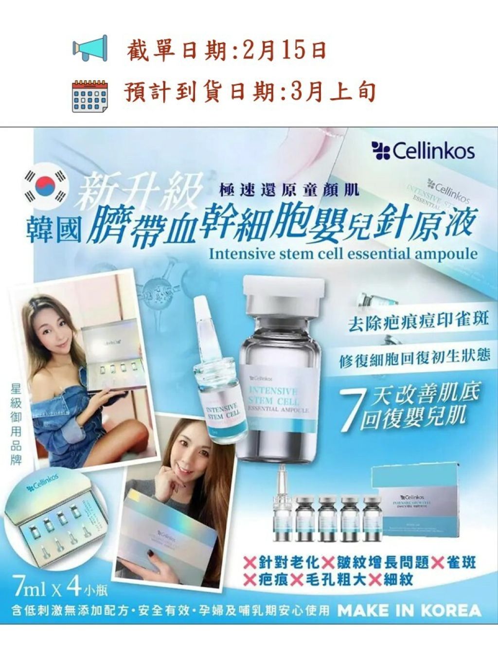 🇰🇷韓國Cellinkos 新升級臍帶血乾細胞嬰兒針原液💡7 ml x 4 小瓶