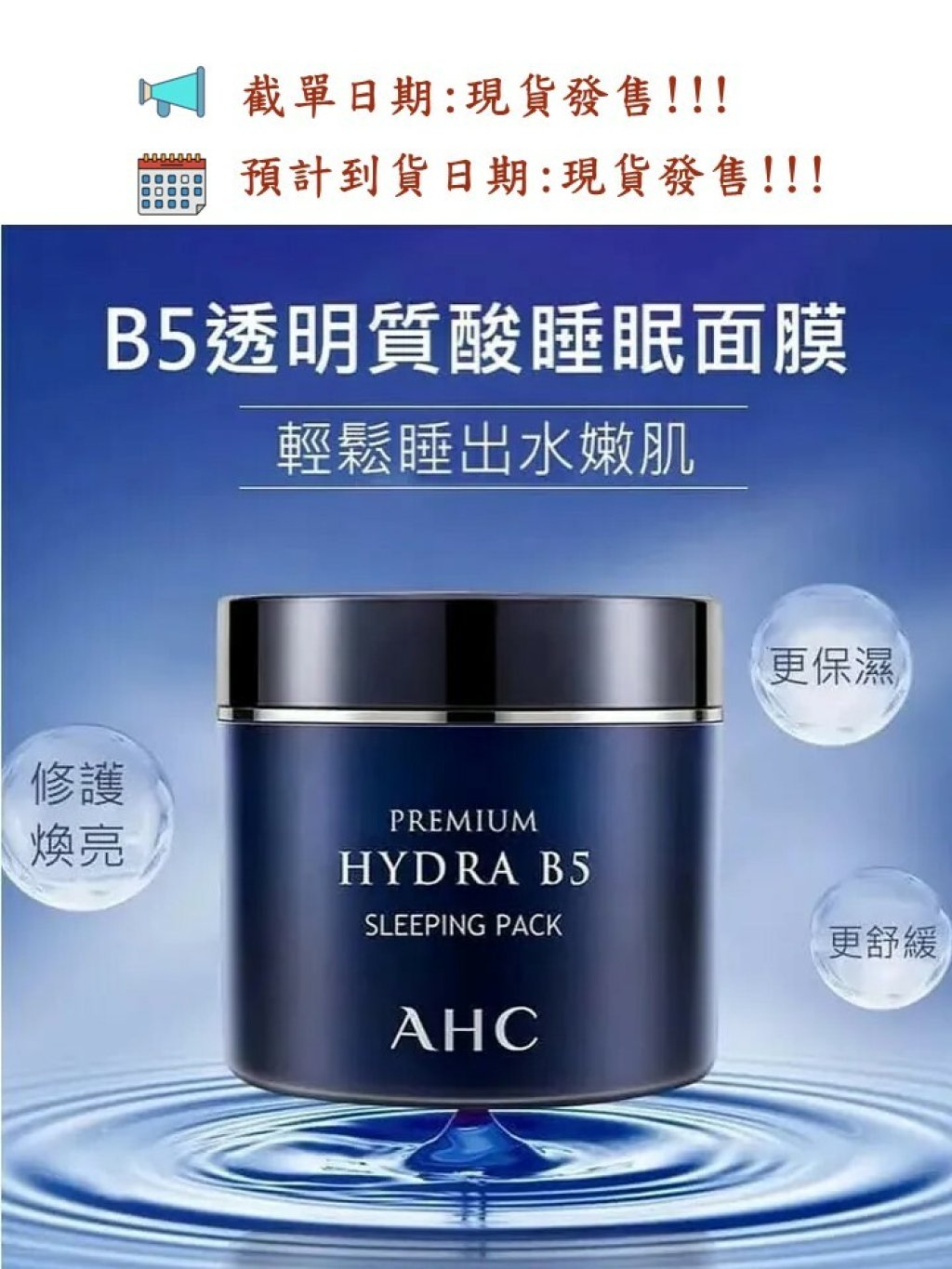 韓國🇰🇷AHC強效保濕B5睡眠面膜💦~100ml