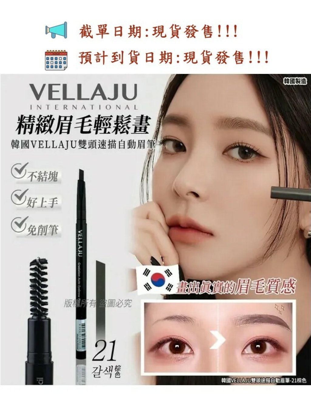 韓國 VELLAJU 雙頭速描自動眉筆 - 21棕色 (1套2支)