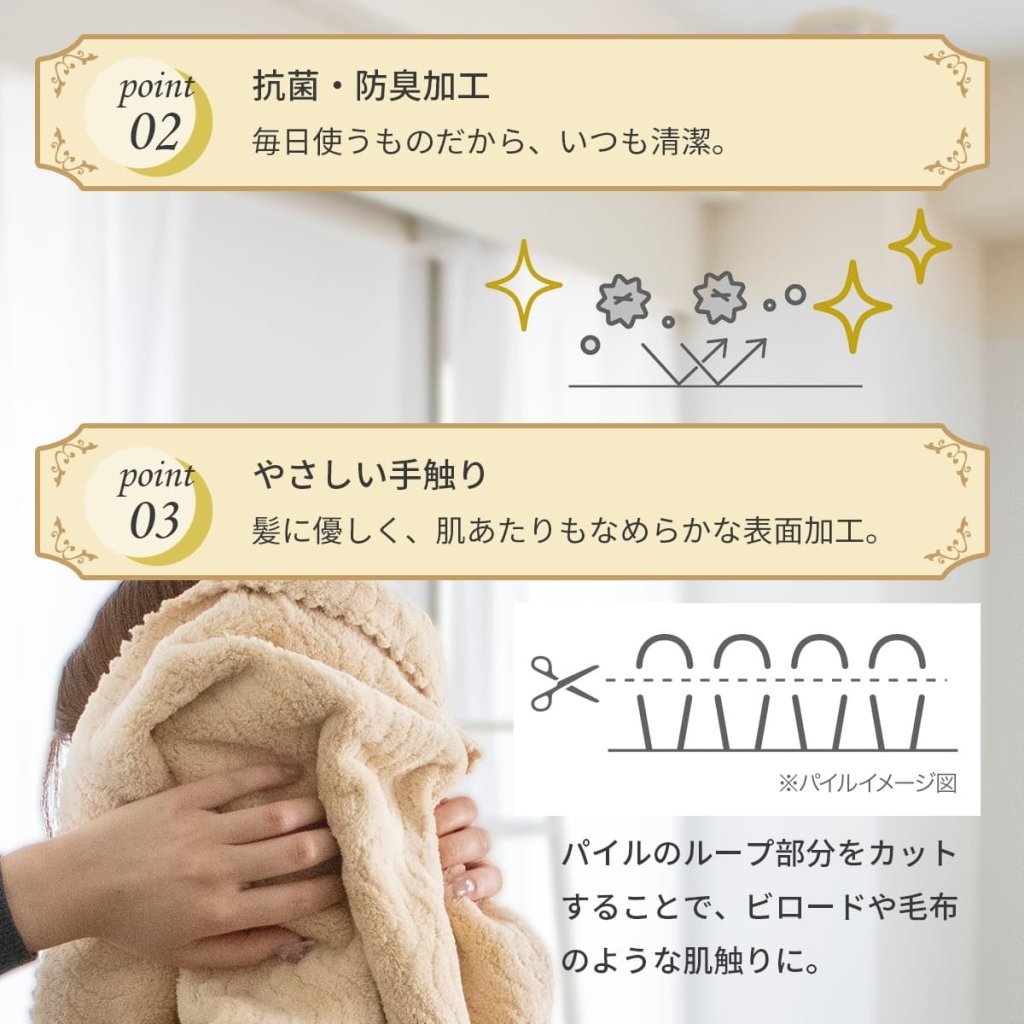 ✔️採用超細纖維,可快速吸收洗後頭髮上的水分。