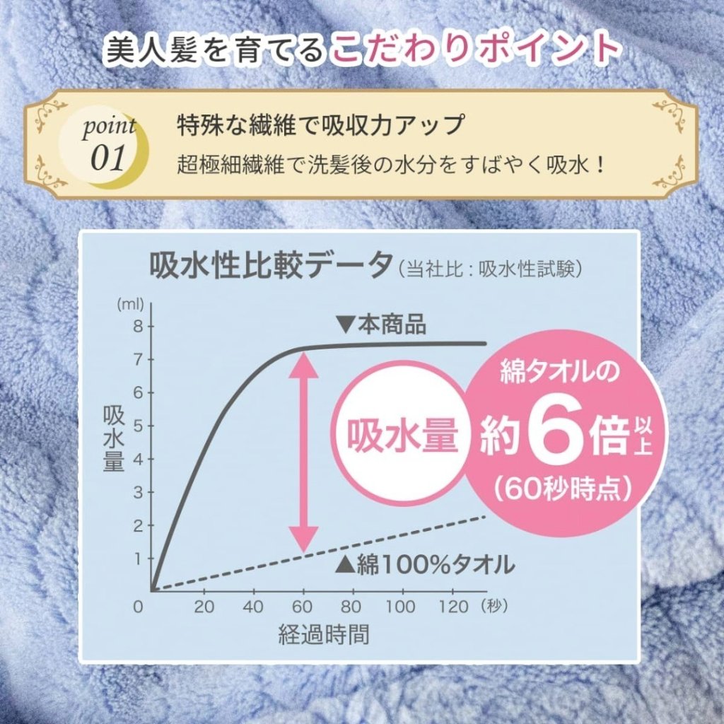 ✔️優異的吸水性可減少吹風機的使用時間並減少對頭髮的熱損傷。