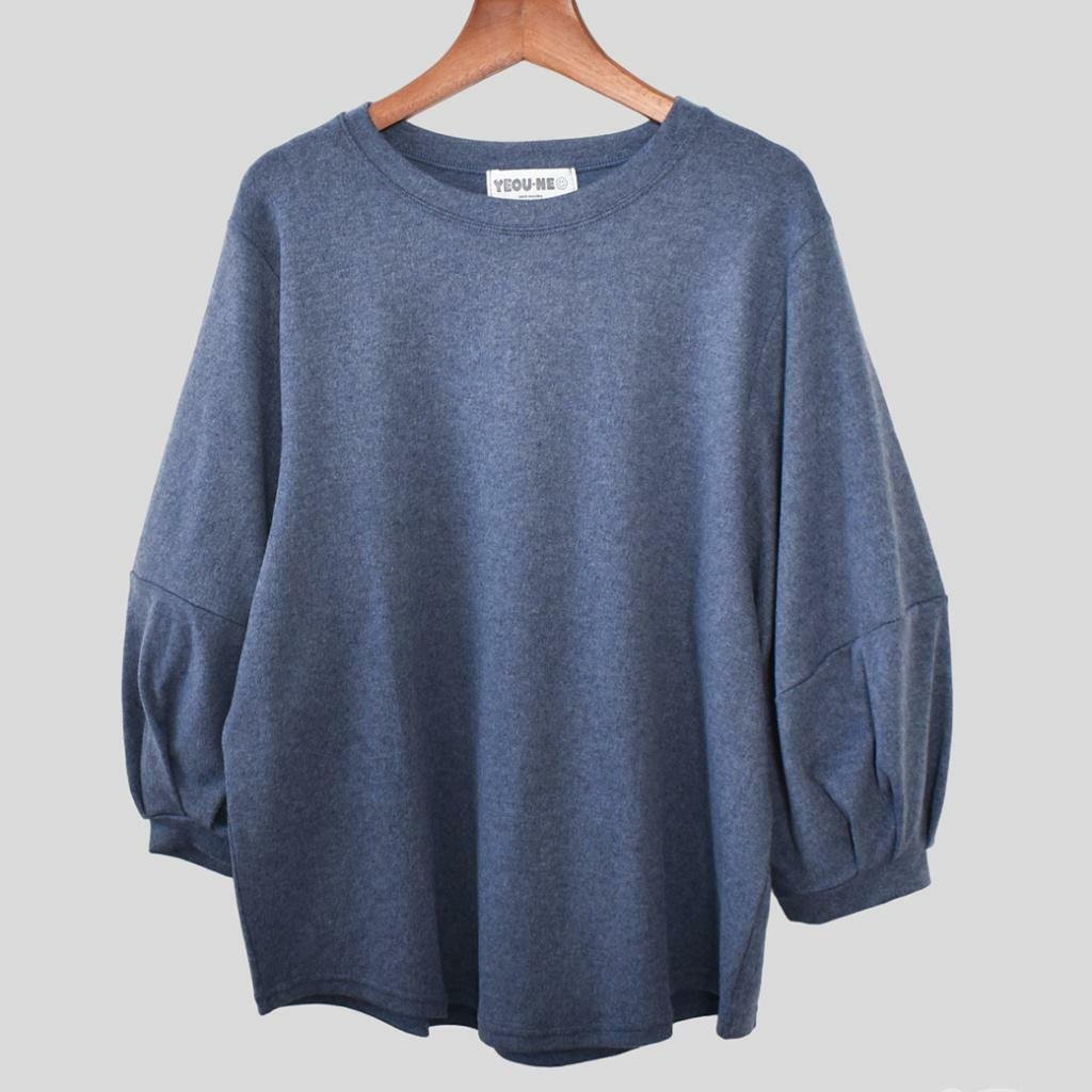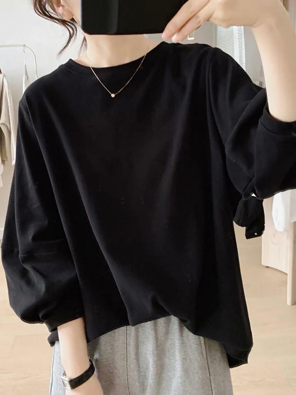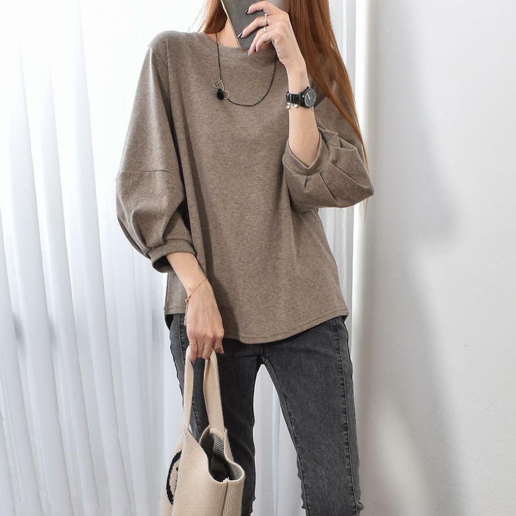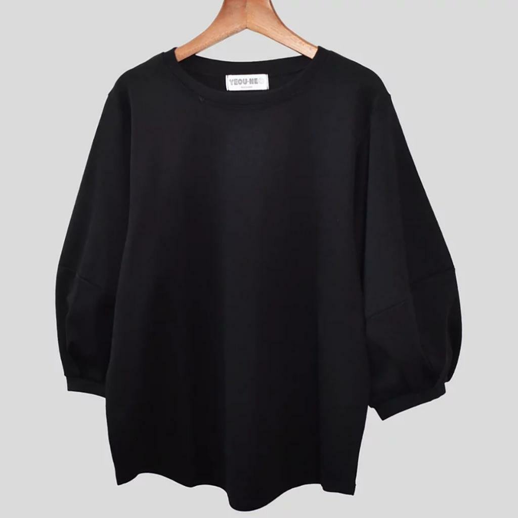 微秋純色系🍂🍂 歐妮 優雅圓領燈籠七分袖T
