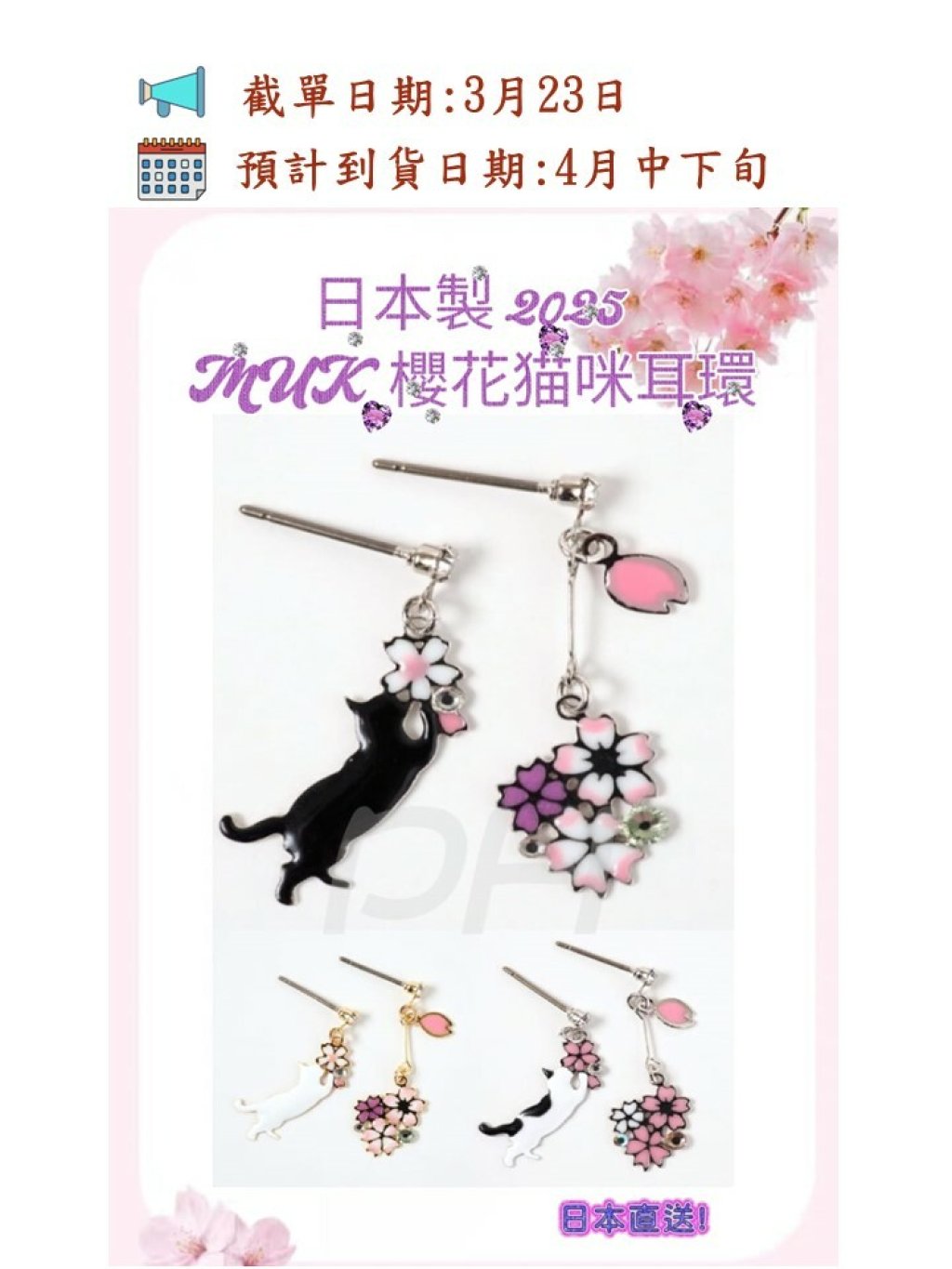🟡日本製 2025 MUK櫻花猫咪耳環🟡